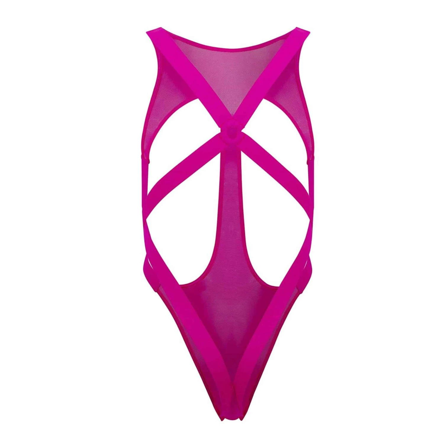 Body string très sexy très sexy en résille douce et totalement transparente. Design original et provocant. Bretelles élastiques croisées dans le dos. Poche frontale non doublée.