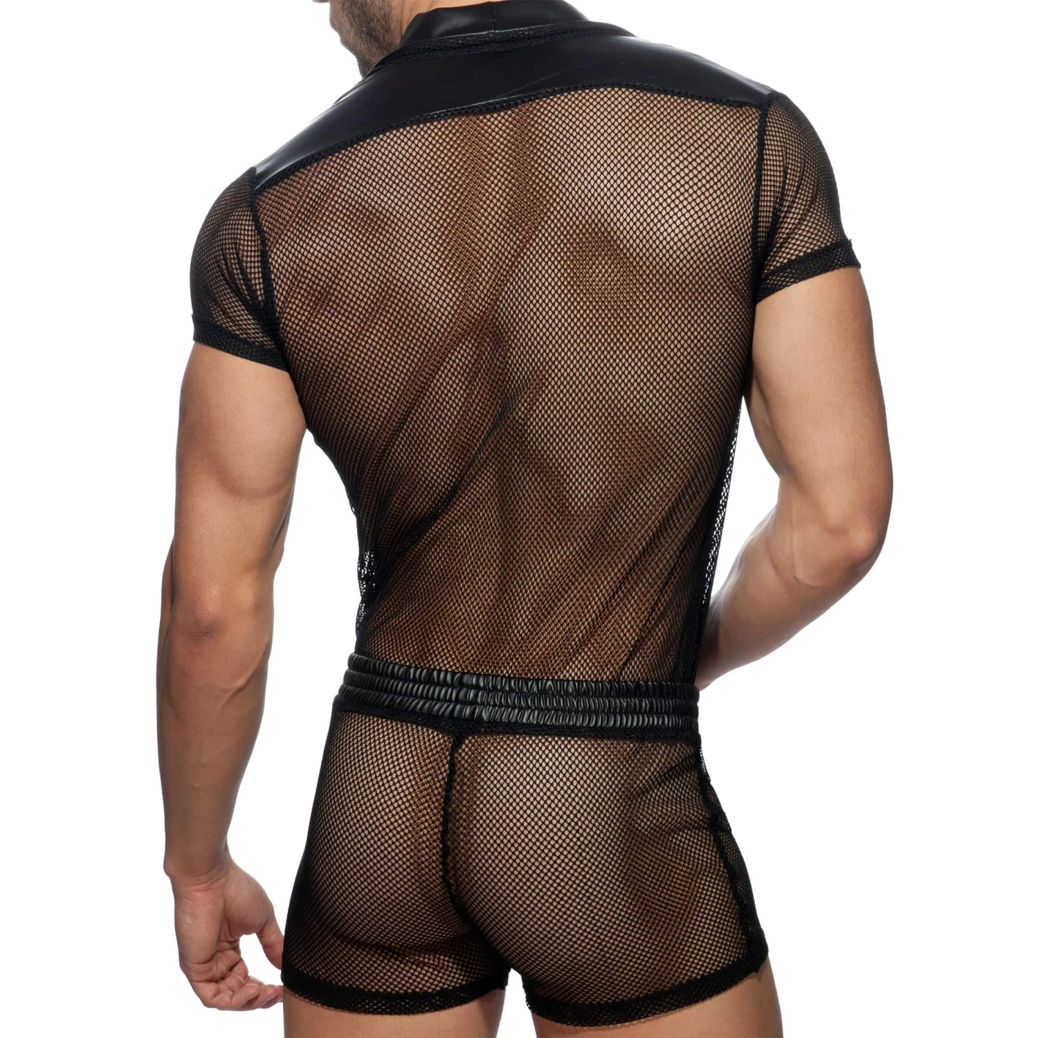 Body sexy et provocant en mesh ajouré, dont le maillage large laisse peu de place à l’imagination. Empiècements opaques de couleur assortie. Col en V plongeant jusqu’au nombril. Coupe super ajustée, soulignant parfaitement vos formes. Ceinture élastique. Logo AD en silicone sur la poitrine. Mousse vendue séparement.