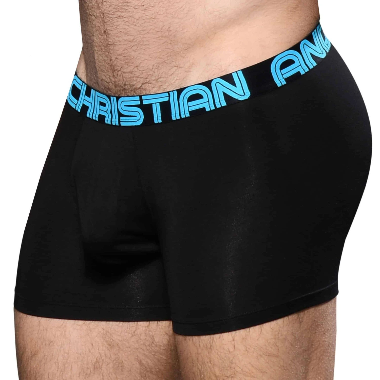 Boxer super doux et confortable en rayonne de bambou dotée de propriétés anti-transpirantes et antibactériennes. Poche Almost Naked, qui épouse et soutient les organes génitaux, sans les comprimer. Ceinture élastique signée Andrew Christian. Edition limitée.