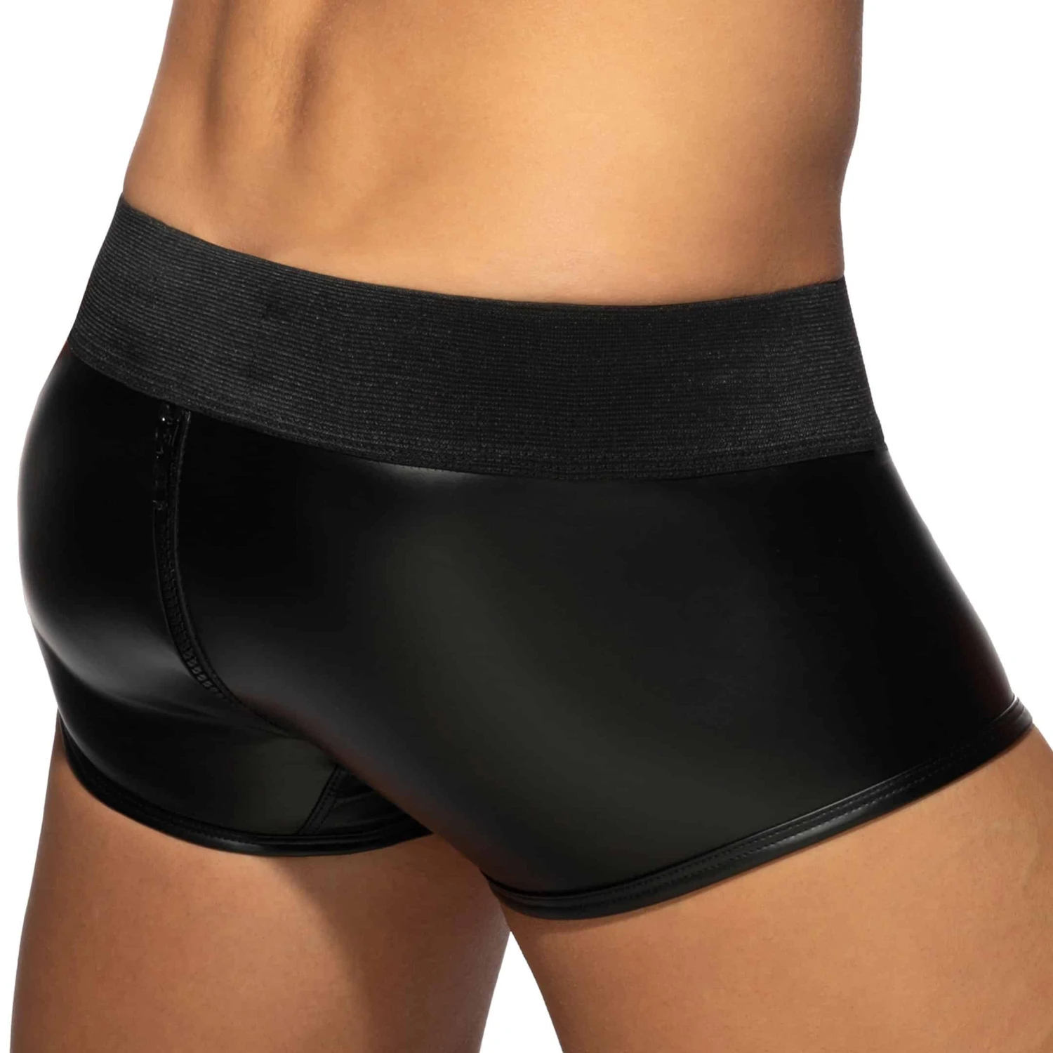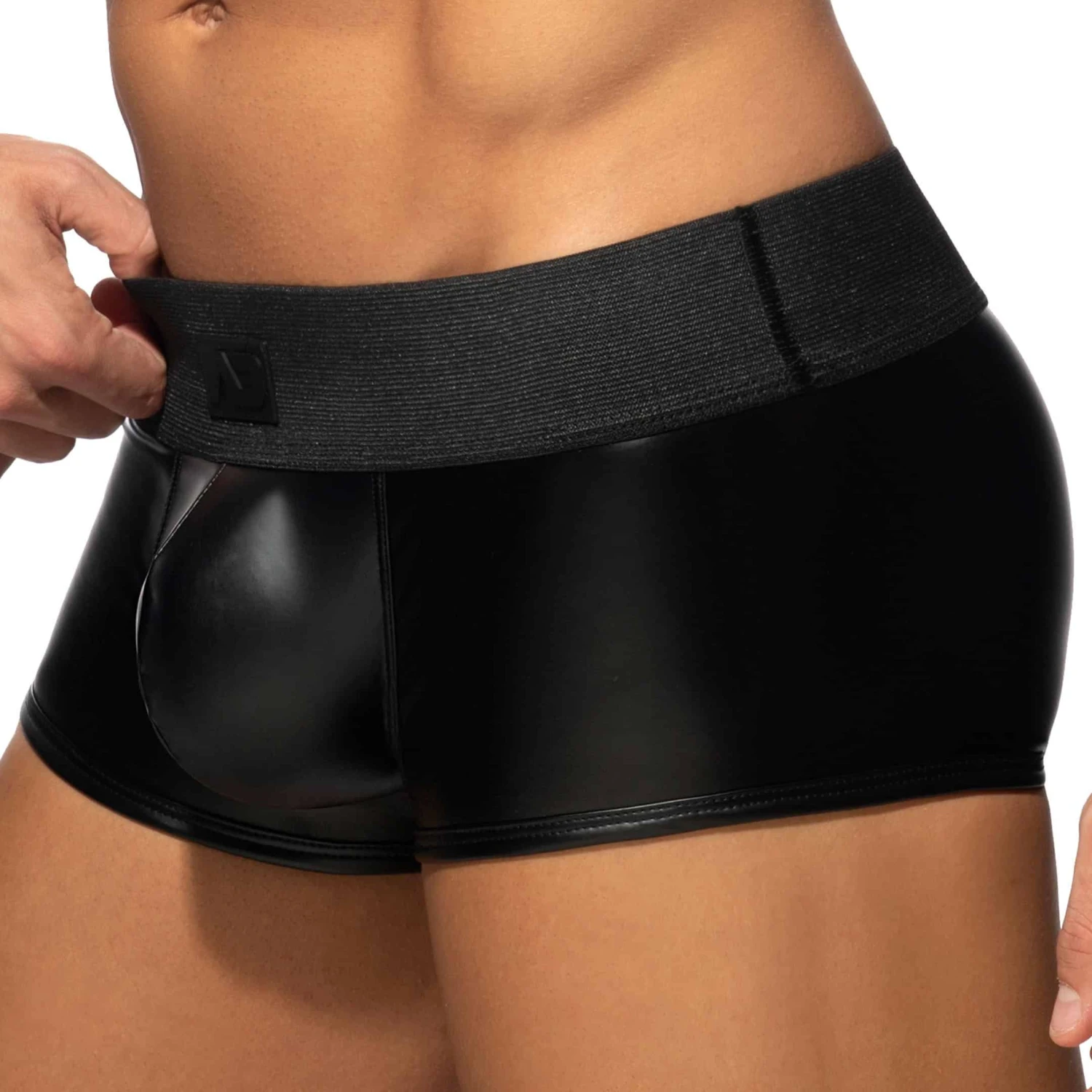 Boxer innovant en microfibre brillante imitant le caoutchouc, pour un look très fetish. Fermeture Eclair fonctionnelle pour un accès direct aux fesses. Technologie RingUp intégrant un anneau cock ring en silicone (diamètre 5 cm, amovible par bouton pression) pour une érection plus dure et plus longue. Ceinture élastique extra-large signée du logo AD en silicone.