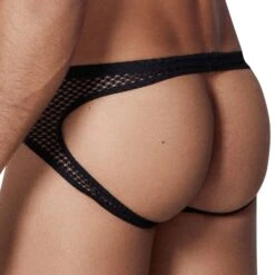 Boxer court très sexy en maille large. Poche frontale opaque doublée. Ceinture élastique recouverte.