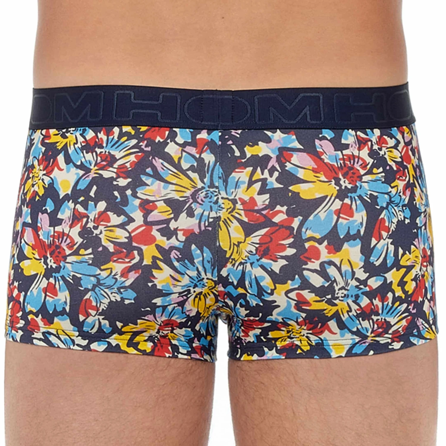 Boxer doux et confortable en mélange de coton, modal et élasthanne. Imprimé floral multicolore. Tissu de qualité supérieure certifié Oeko-Tex. Ceinture élastique signée HOM.