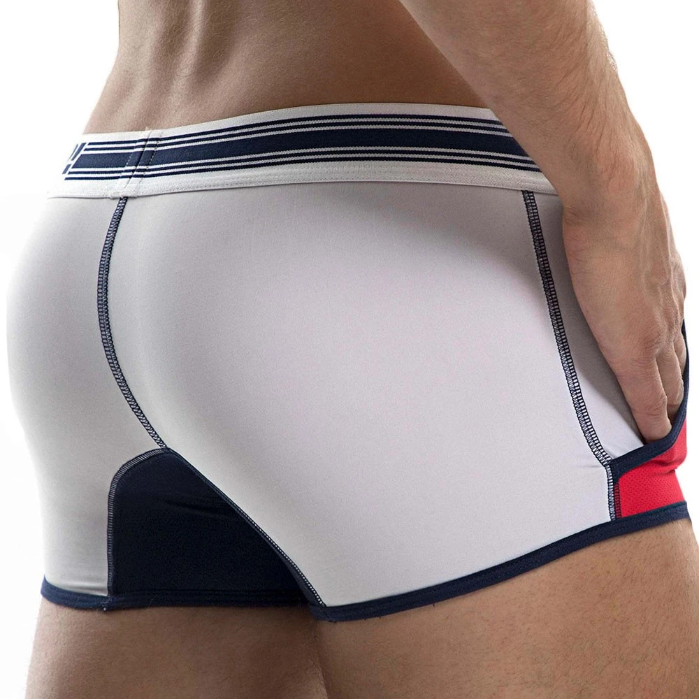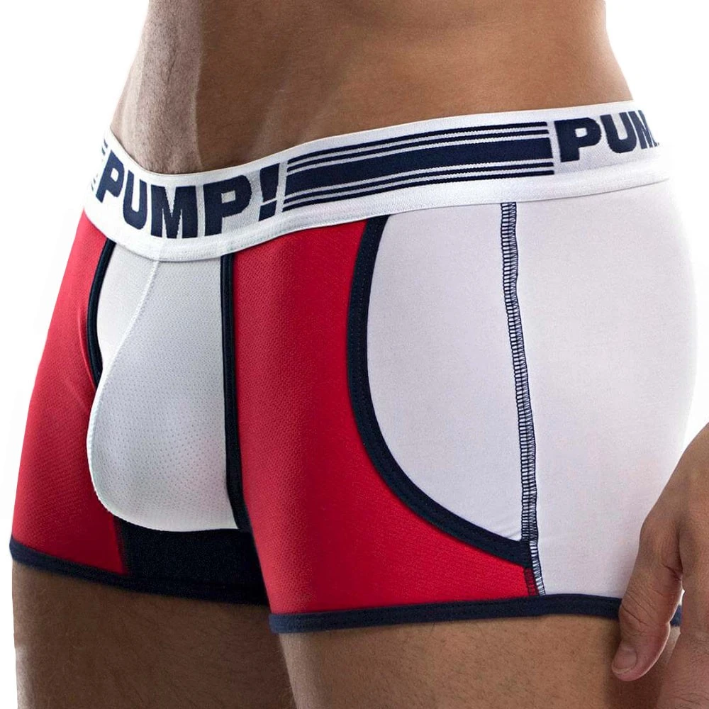 Boxer taille basse très innovant avec sa dualité de matières très réussie. La poche frontale doublée et les 2 poches latérales en mesh respirant et ajouré confèrent un aspect très sexy et original. La microfibre quant à elle, garantit une douceur intense et un grand confort aux parties arrières. Bordures de couleur contrastée. Ceinture large PUMP!
