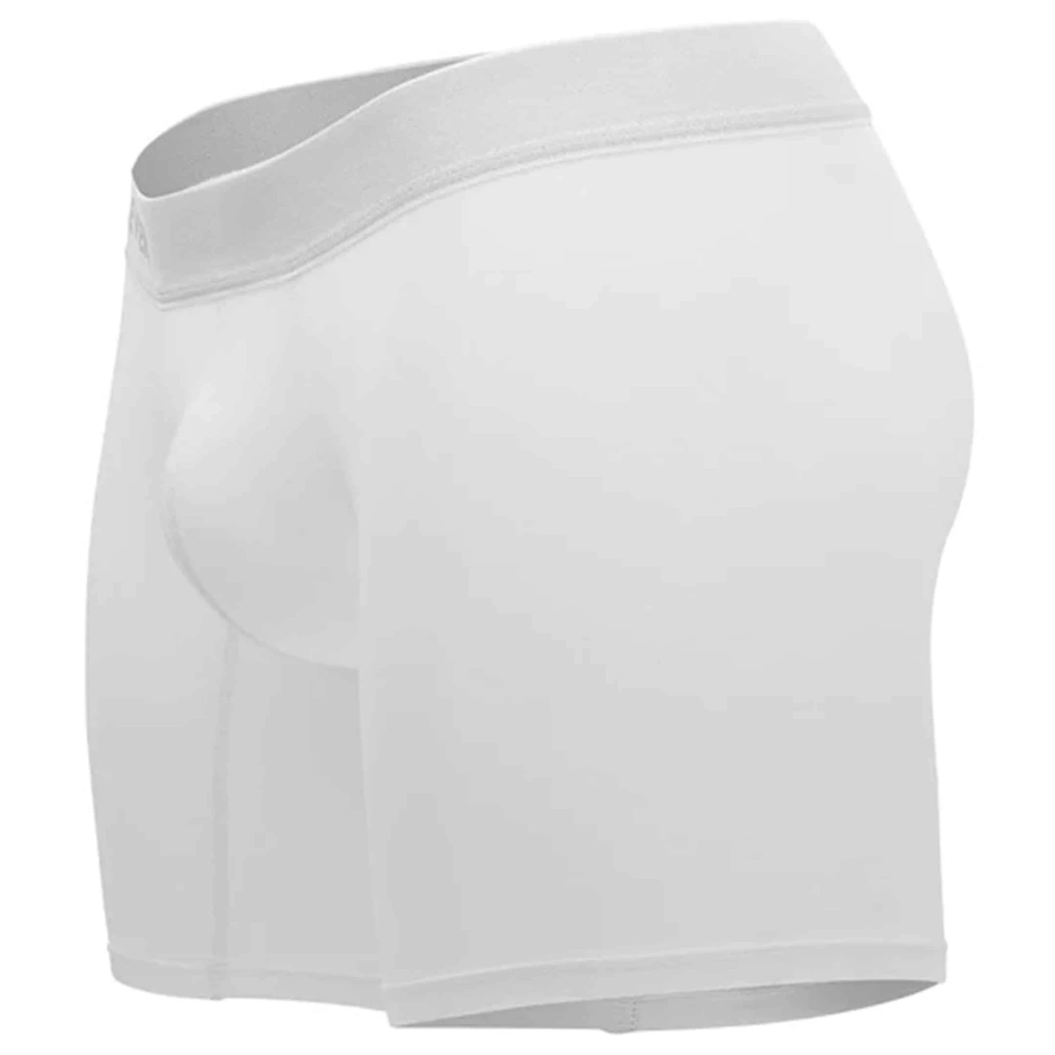 Boxer sport long et ajusté en microfibre extensible, douce et légère, de couleur unie. Poche frontale anatomique enveloppant naturellement votre intimité, pour un maintien très agréable et sensuel. Ceinture élastique signée Clever.