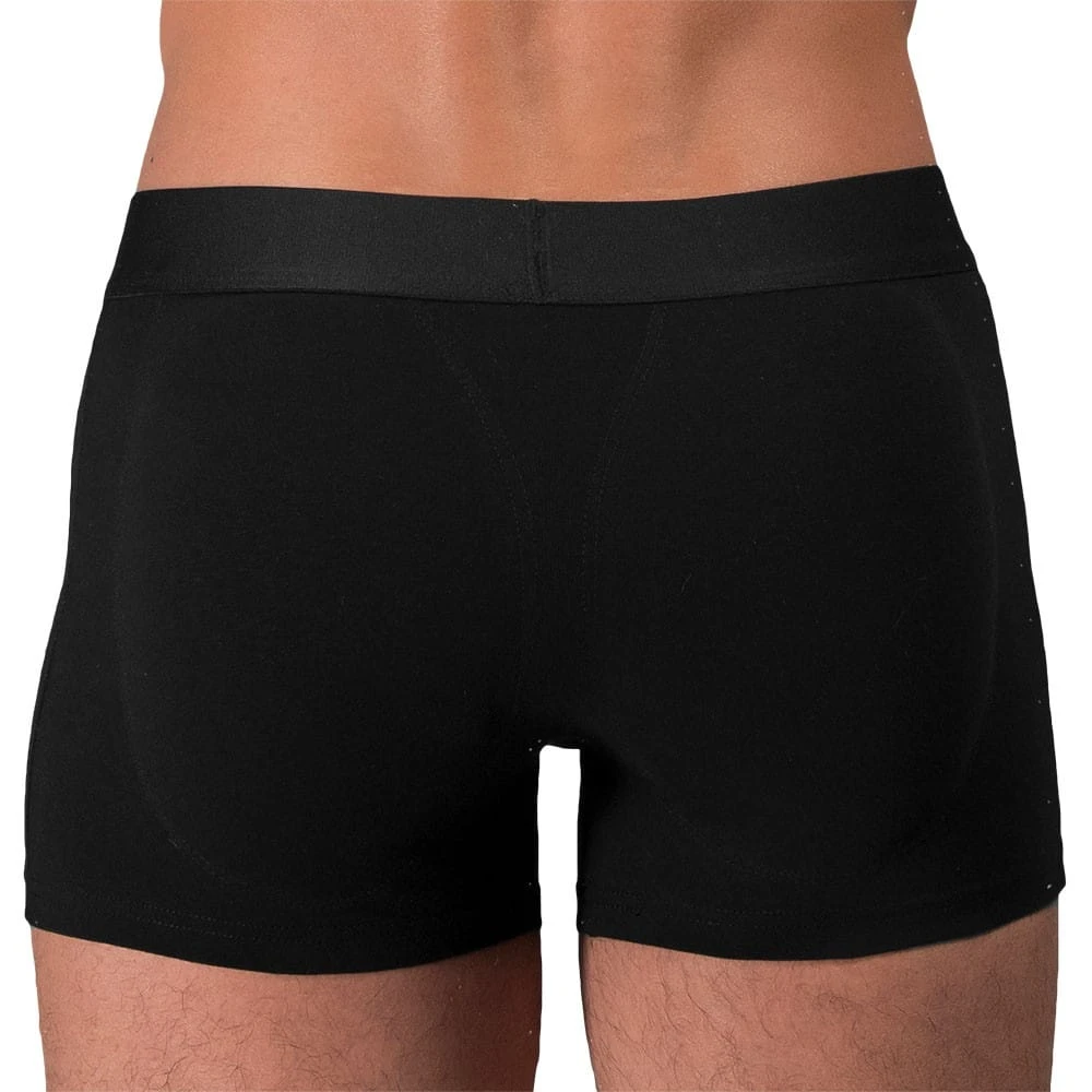 Boxer long en coton doté de mousses amovibles à l’arrière, pour des fesses rondes parfaites. Poche frontale doublée. Ceinture élastique signée Rounderbum.