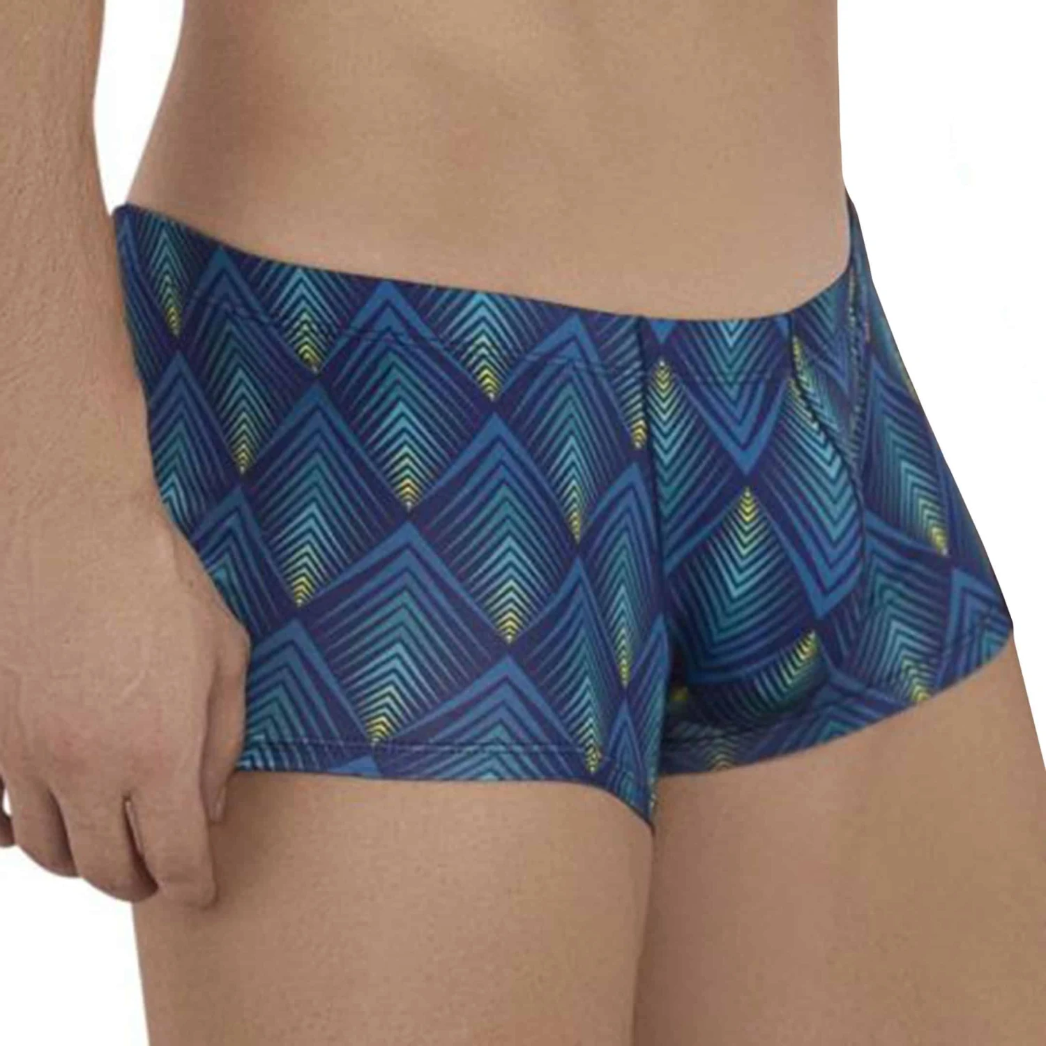Boxer taille basse en microfibre extensible, douce et confortable. Imprimé Magical très graphique. Poche frontale anatomique dotée de la technologie Jumbo Enhancement Cup enveloppant naturellement votre intimité, pour un maintien très agréable et sensuel. Couture verticale entre les fesses pour un très joli galbe. Fine ceinture élastique recouverte.