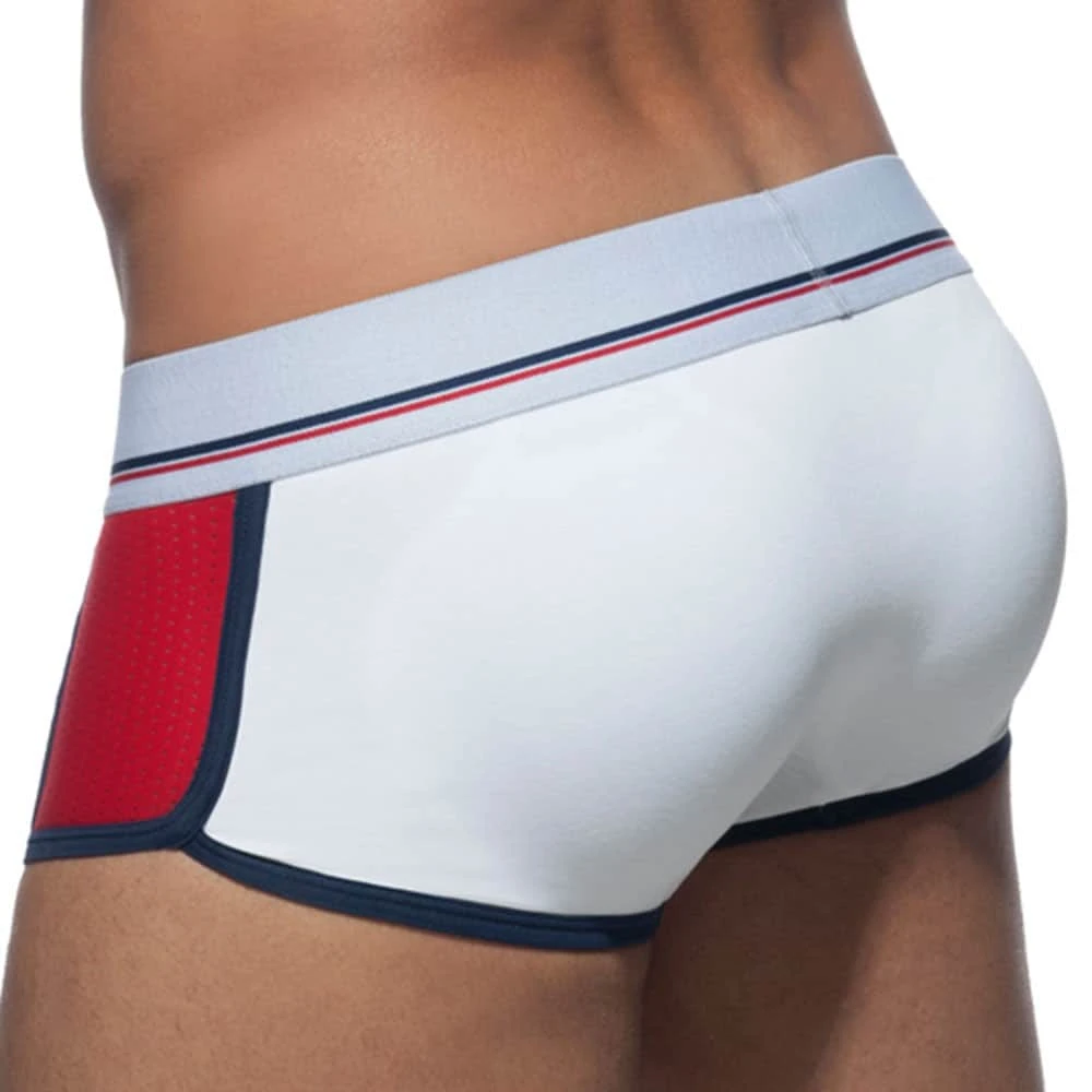Boxer taille basse en coton très doux et agréable à porter. Les mousses amovibles valorisent naturellement votre anatomie, devant comme derrière. Empiècements en mesh respirant sur les côtés. Bordures de couleur contrastée. Ceinture élastique signée Addicted. Fabriqué à Barcelone.