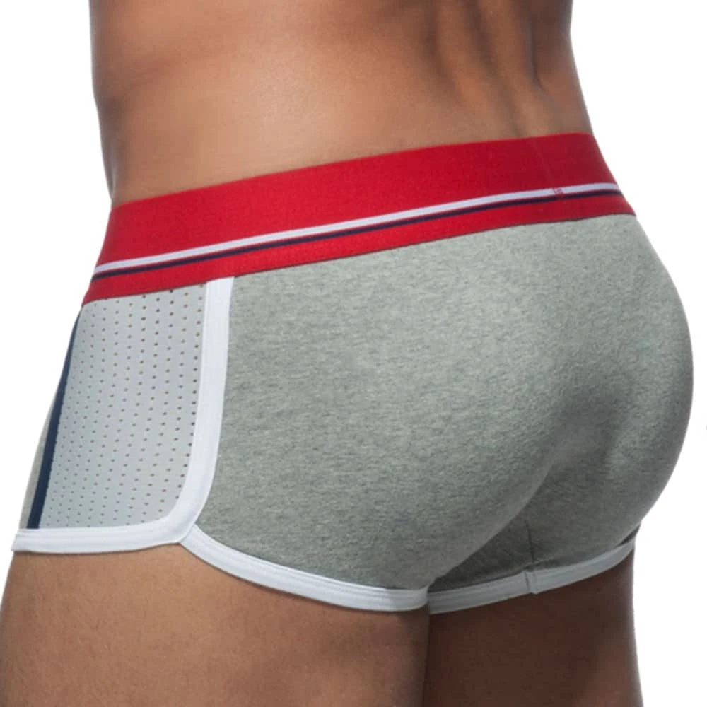 Boxer taille basse en coton très doux et agréable à porter. Les mousses amovibles valorisent naturellement votre anatomie, devant comme derrière. Empiècements en mesh respirant sur les côtés. Bordures de couleur contrastée. Ceinture élastique signée Addicted. Fabriqué à Barcelone.