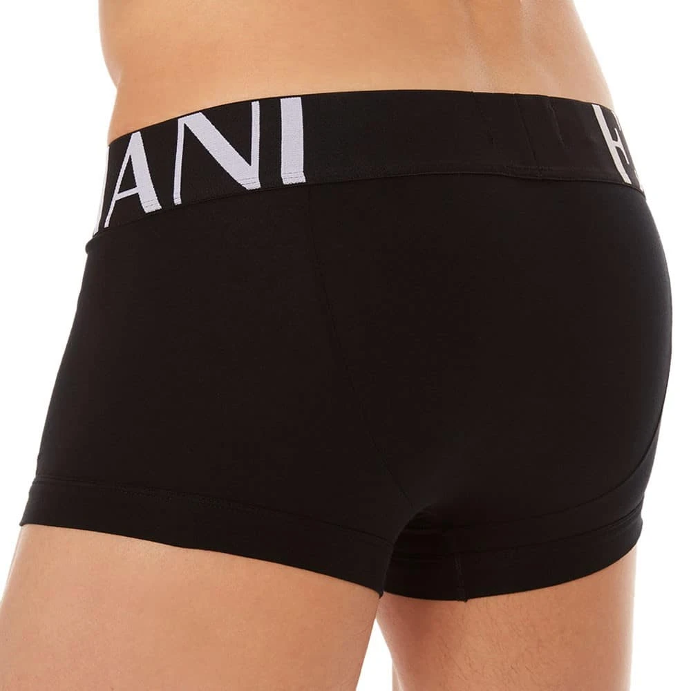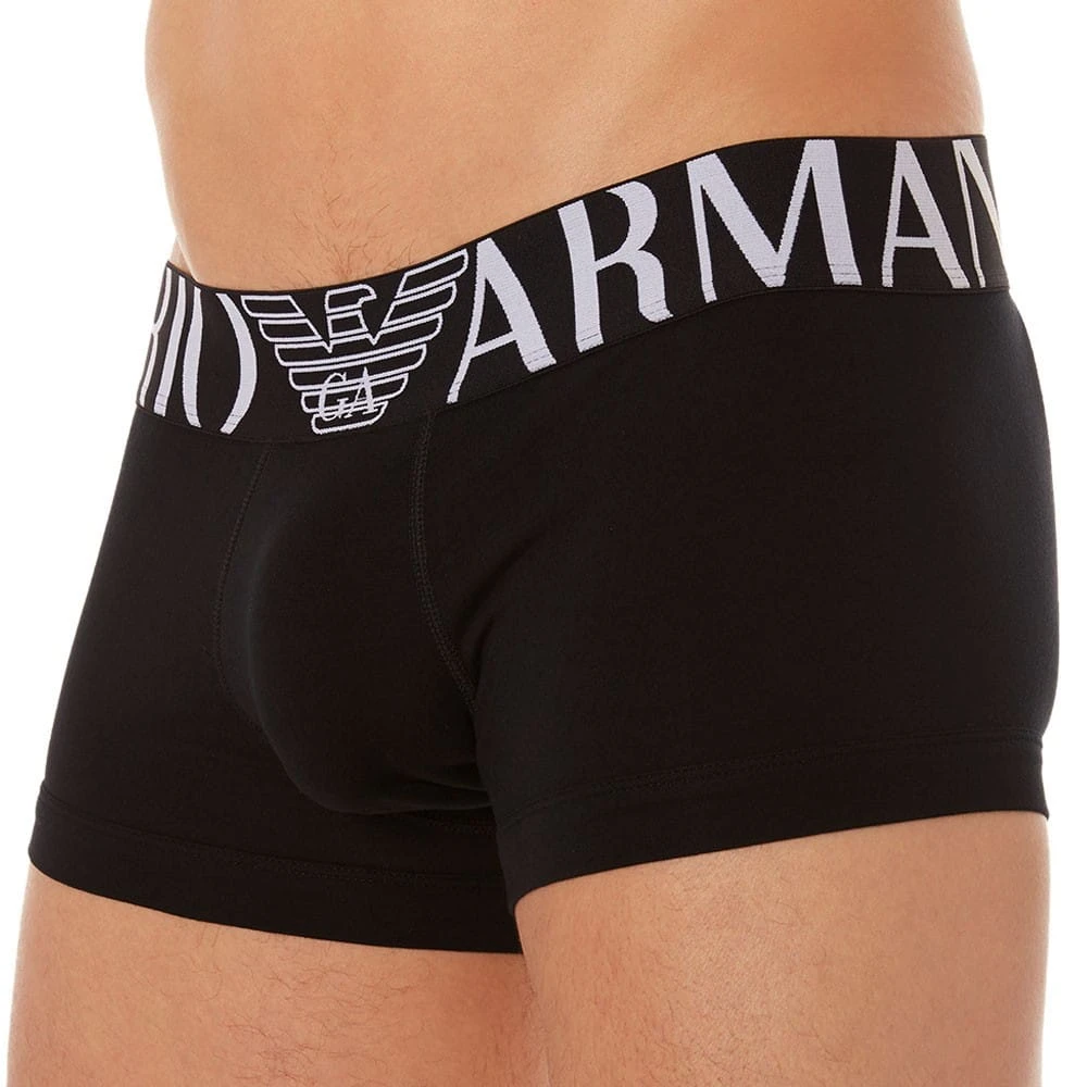 Boxer en coton très doux et confortable de couleur unie. Poche frontale doublée. Large ceinture élastique Emporio Armani de couleur contrastée.