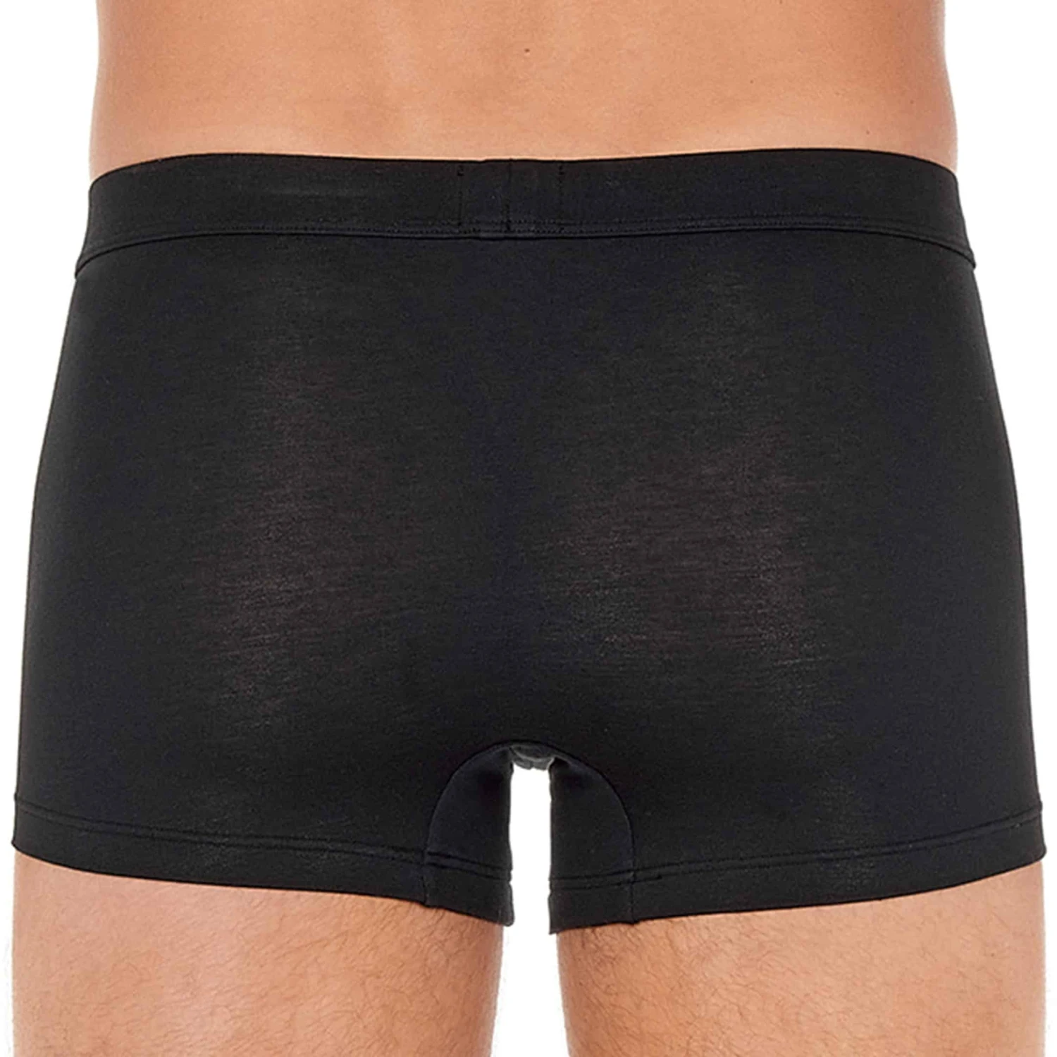 Boxer uni en coton Supima de qualité supérieure certifié Oeko-Tex. Ses longues fibres soyeuses lui garantissent une douceur, une légereté et un confort uniques. Poche frontale doublée. Logo HOM brodé sur la ceinture élastique recouverte.