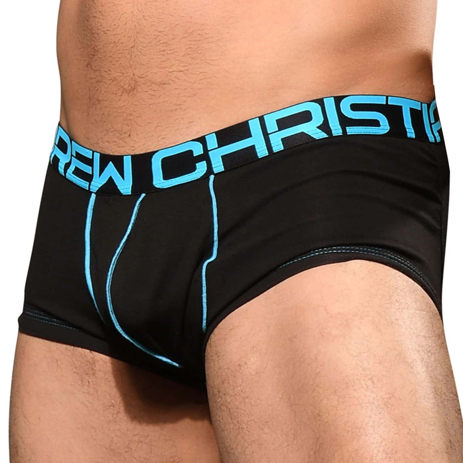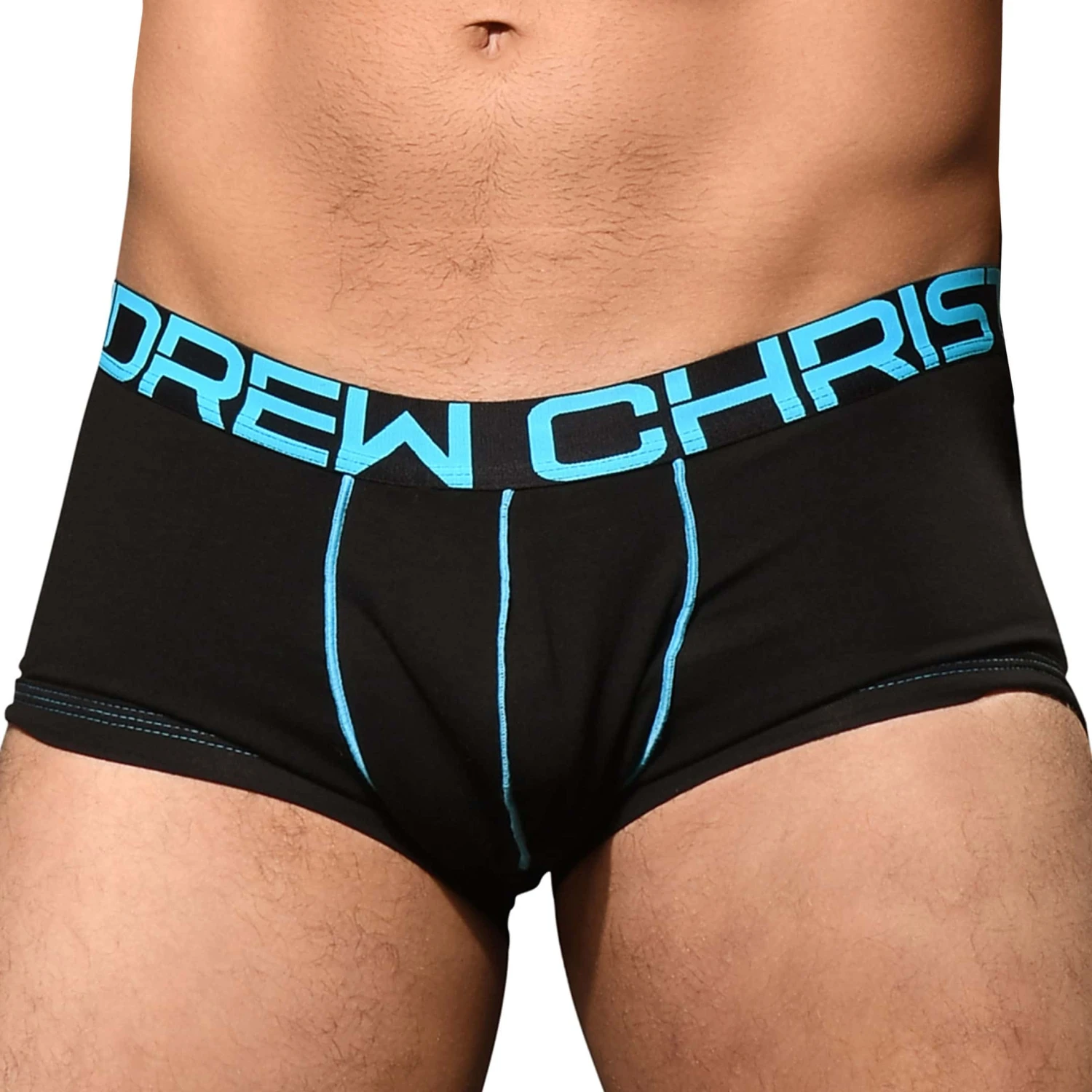 Boxer taille basse en coton doux, léger et confortable. Technologie FlashLIFT pour des fesses rondes parfaites, sans ajout de mousse. Poche frontale Show-It pour un maintien parfait et un effet push up garanti. Détails de couleur contrastée. Ceinture élastique amincissante signée Andrew Christian. Edition Limitée.