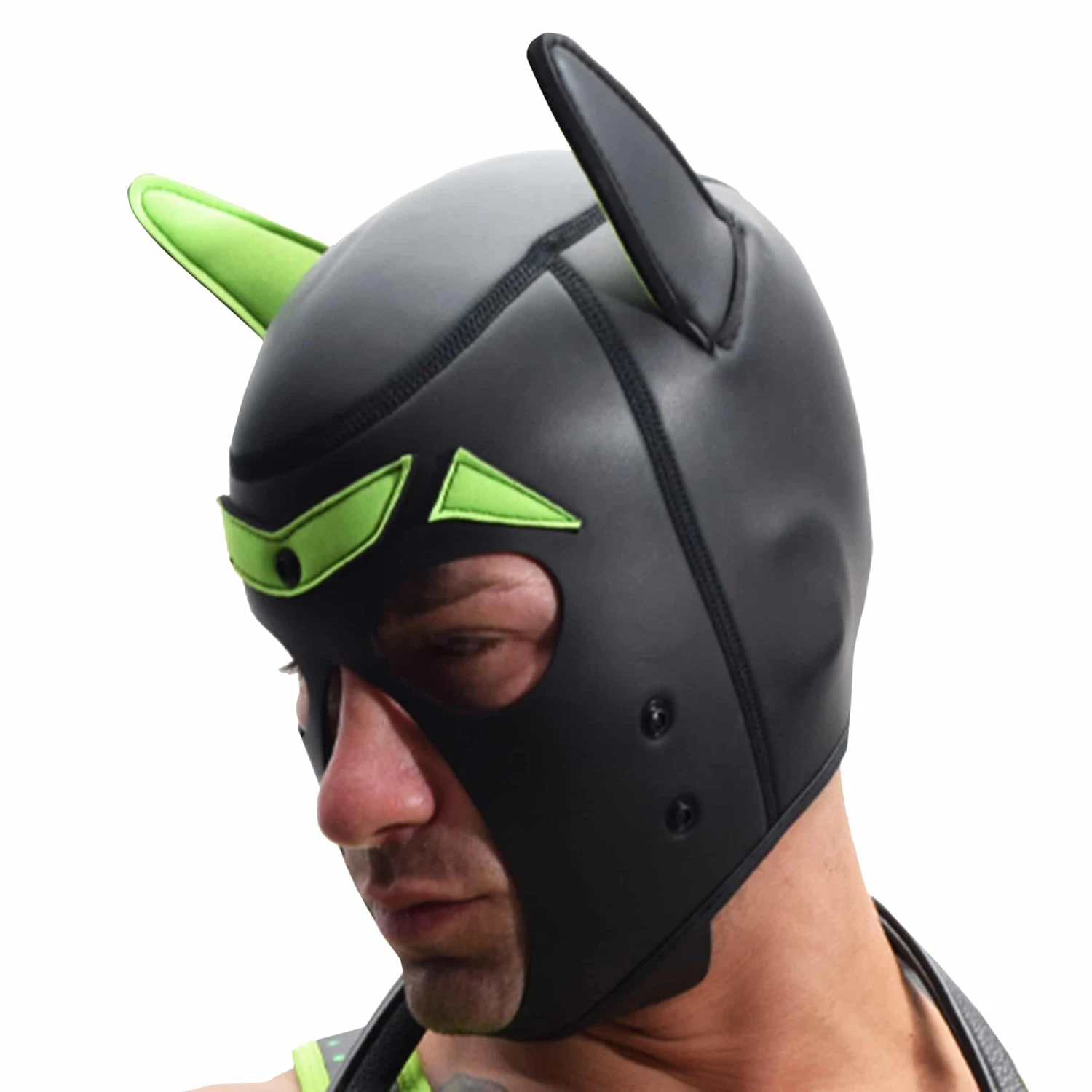 Masque de chien intégral en néoprène caoutchouté, pour s’adonner à de jeux de rôle très fetish. Museau respirant amovible par boutons-pression. Lumières LED intégrées avec modes fixe et clignotant. Sourcils fendus et oreilles souples. Anneau métallique en D et logo Breedwell à l’arrière de la tête. Livré avec un câble de chargement USB. Taille S/M pour un tour de tête (mesuré au niveau des sourcils) de 56 à 58 cm. Taille L/XL pour un tour de tête de 59 à 61 cm.