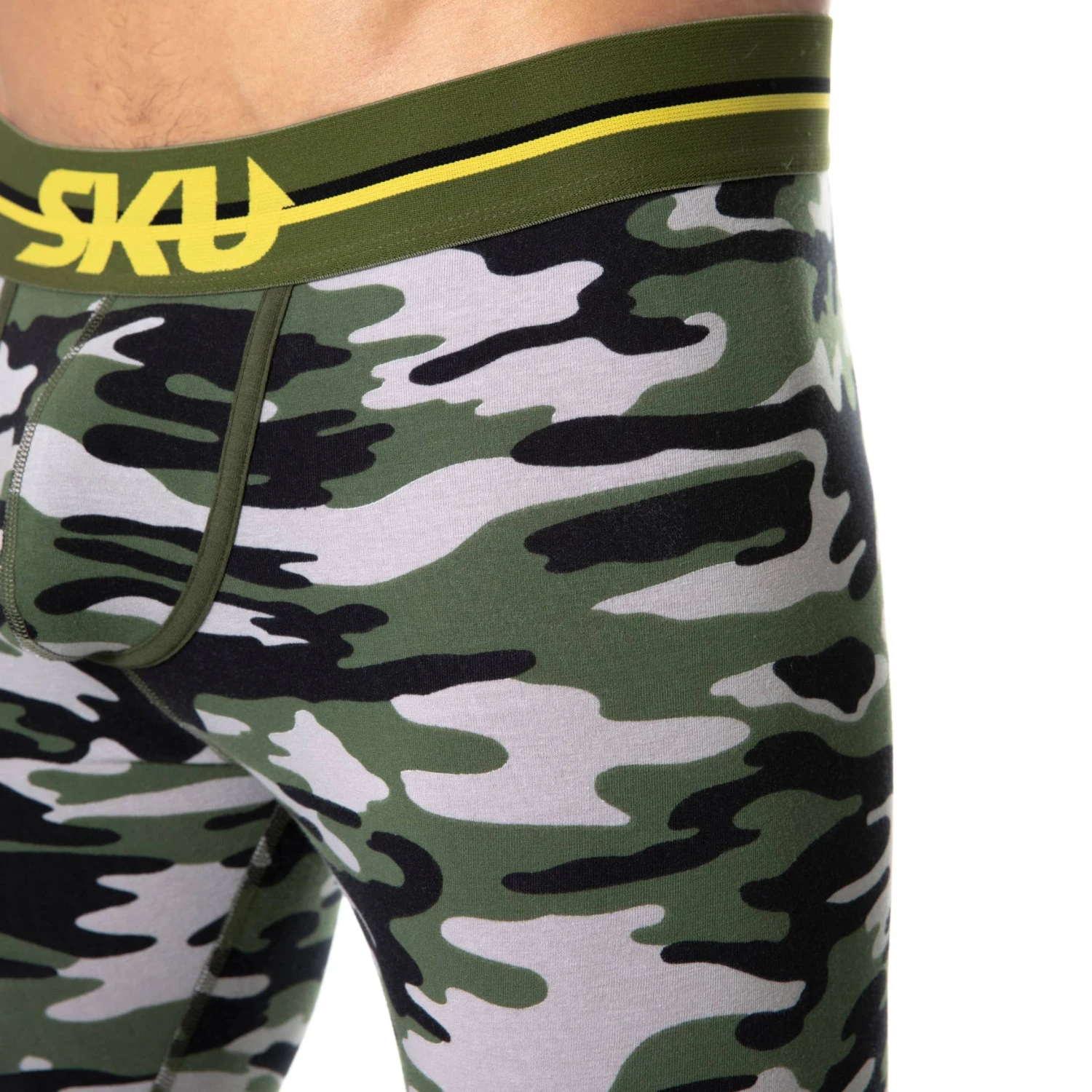 Calecon long en coton premium doux et extensible de couleur intense. Coupe taille basse ajustée qui épouse les formes. Poche frontale préformée assurant un excellent maintien. Confort enveloppant sur les fesses. Ceinture tricolore large et douce signée SKU. Bordures contrastées.