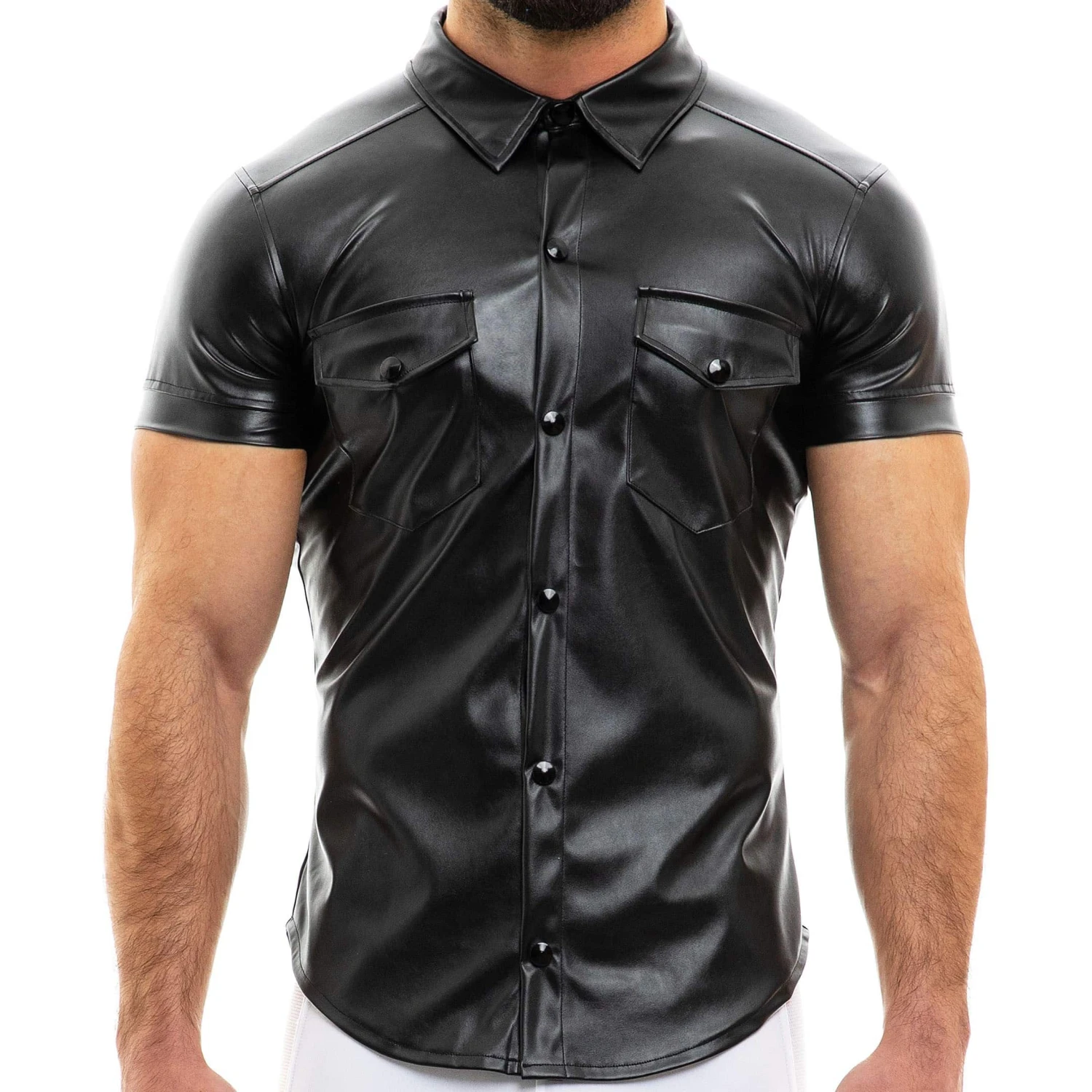 Chemisette très sexy et luxueuse en microfibre imitant le cuir. Coupe cintrée. Fermeture 6 boutons. 2 poches à rabat sur la poitrine. Logo métallique Modus Vivendi dans le dos.