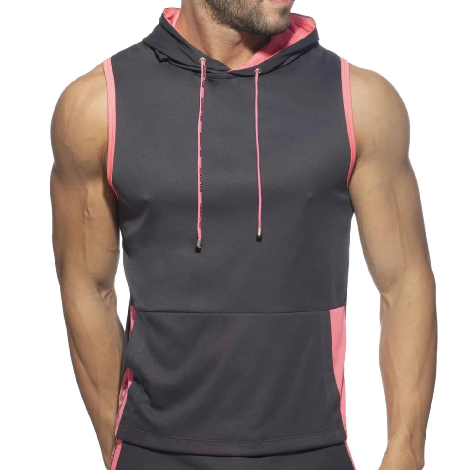 Débardeur sport et sexy en microfibre légère et respirante. Capuche avec cordon de serrage. Coupe ajustée pour mettre en valeur votre musculature. Grande double poche avec bande contrastée signée Addicted sur le côté droit.