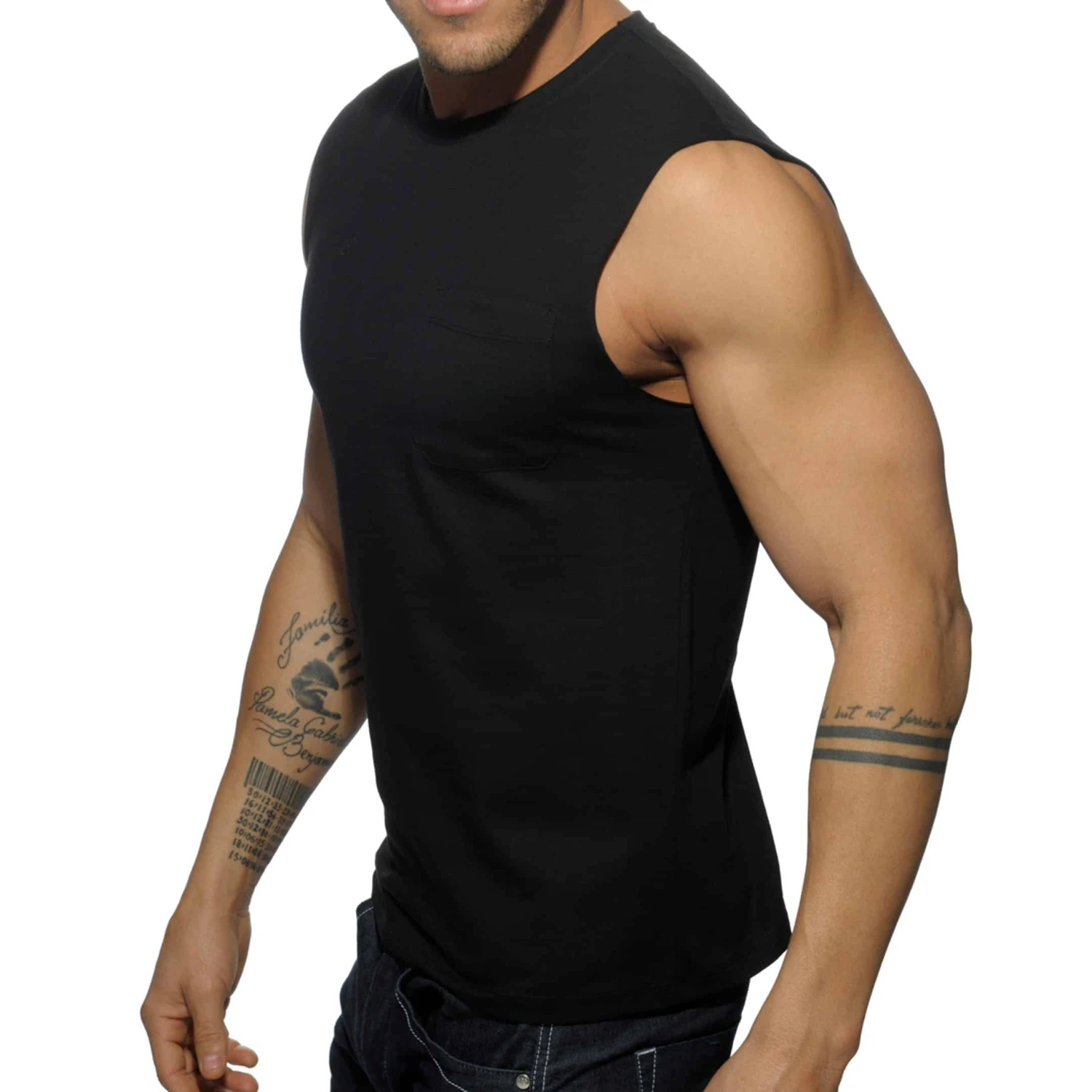 Débardeur ajusté en pur coton doux. Bordure des manches sans couture. Poche sur la poitrine. Logo Addicted dans le dos.