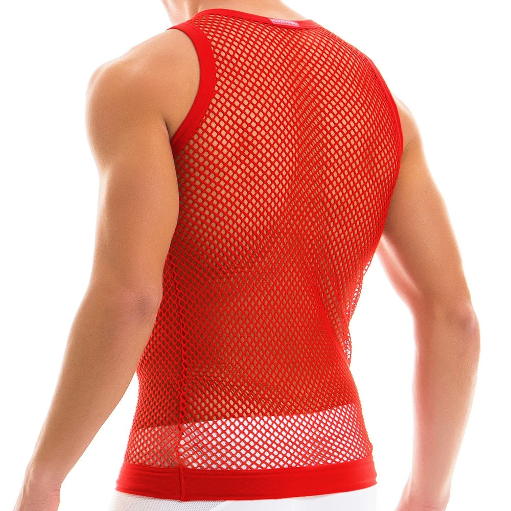 Débardeur uni très sexy en mesh ajouré, extensible et respirant, dont le large maillage laisse peu de place à l’imagination. Col rond. Coupe très ajustée mettant en valeur votre musculature.