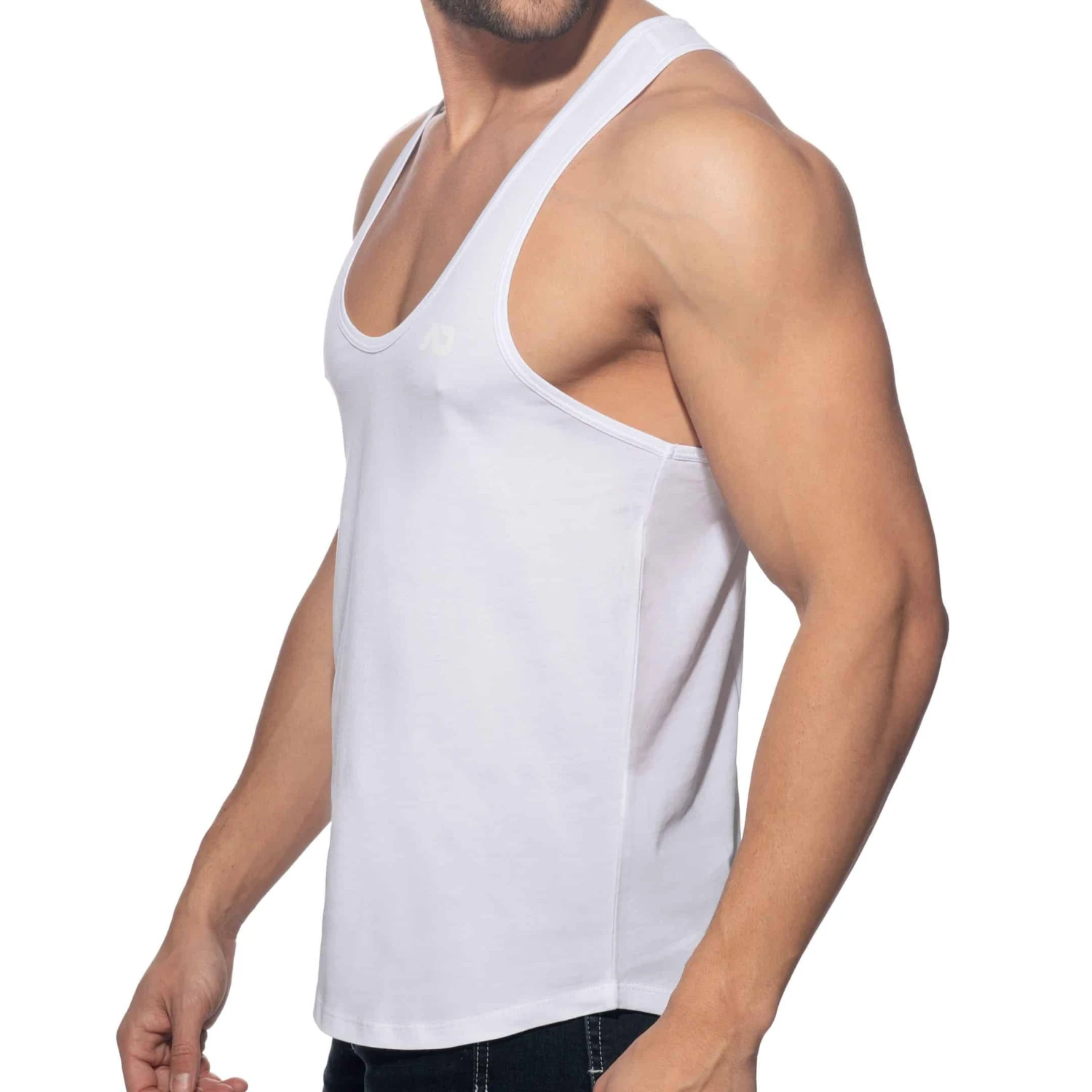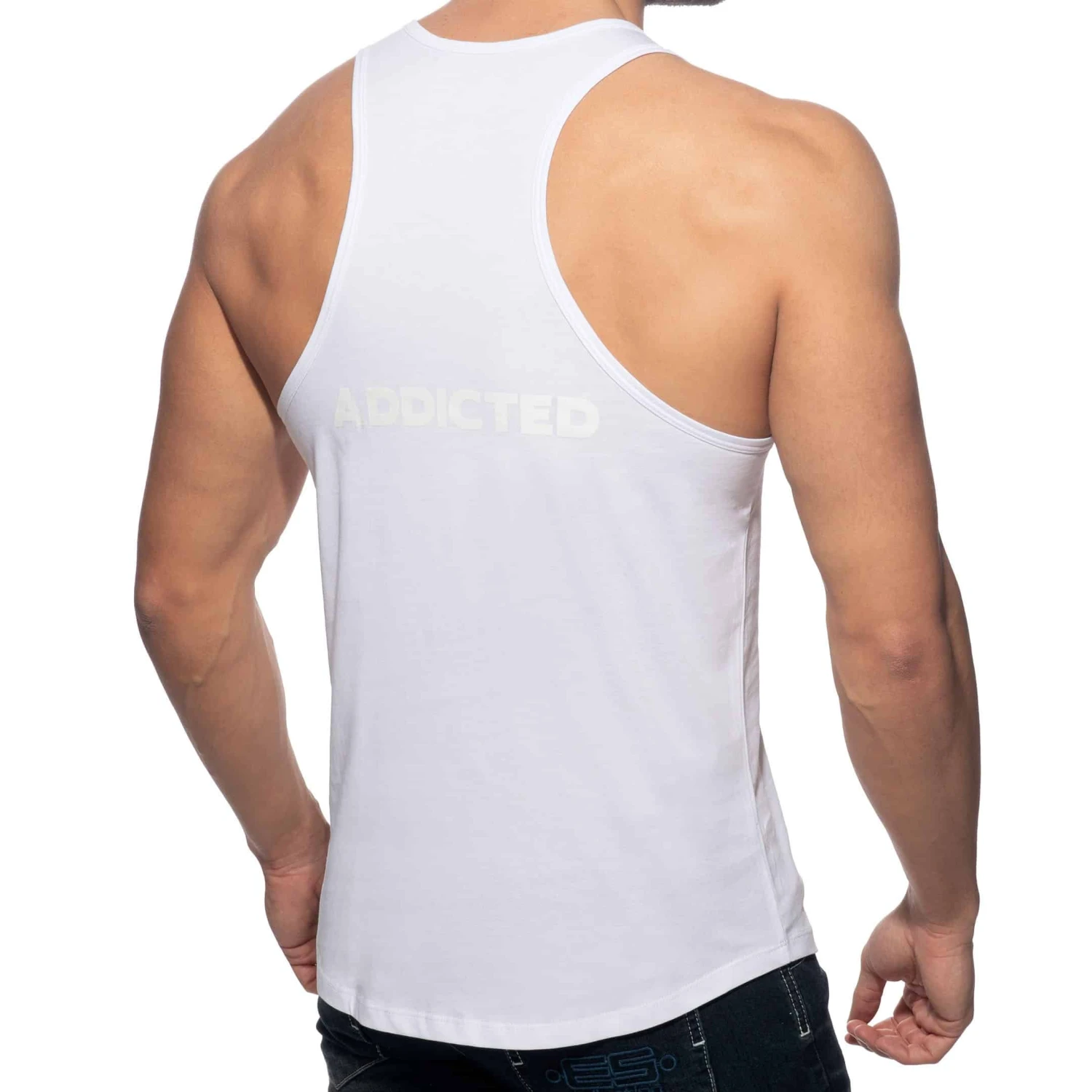 Débardeur 100% coton, sexy et confortable, idéal pour le sport. Coupe ajustée avec dos nageur et col en U profond. Imprimé Addicted ton sur ton sur la poitrine gauche et dans le dos.