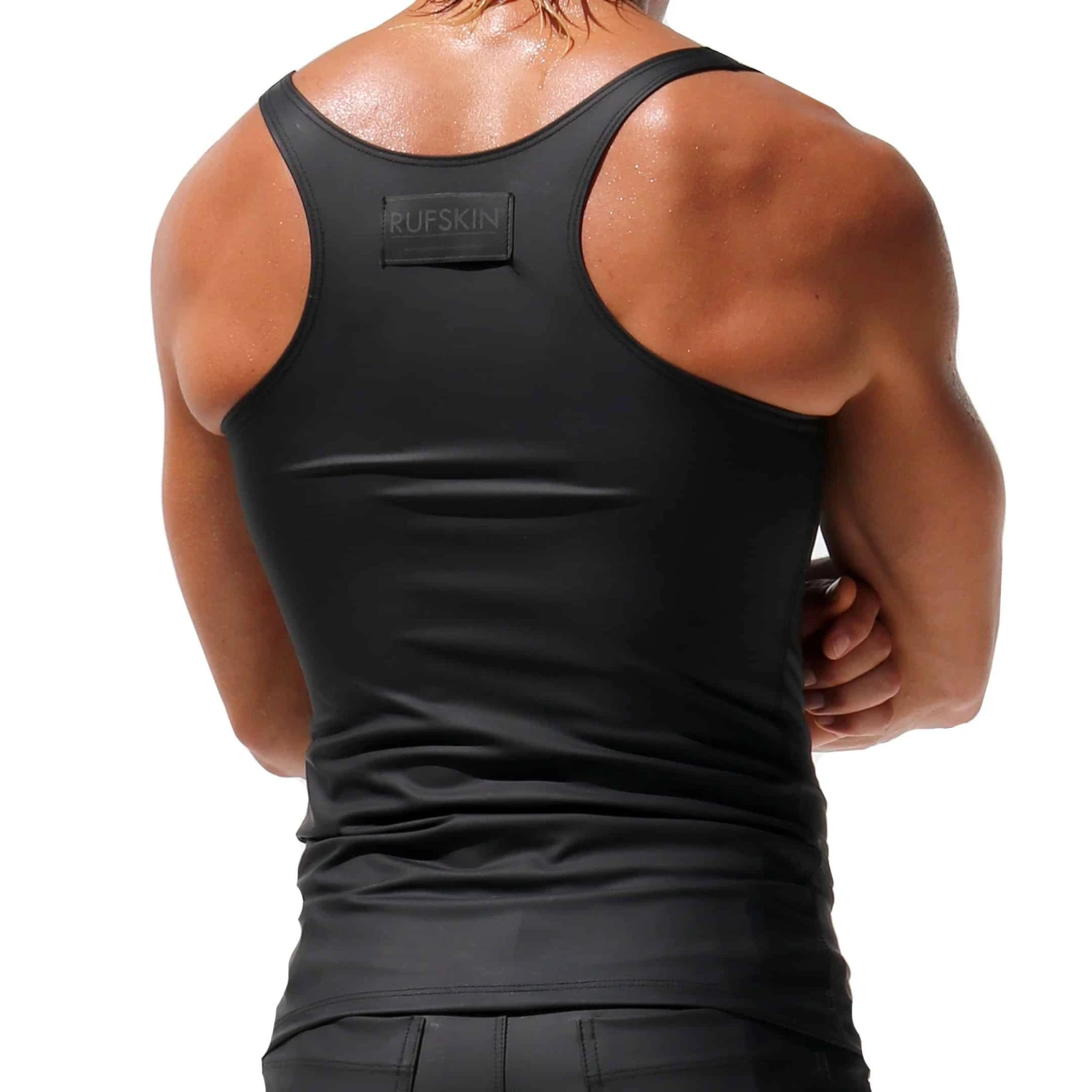 Débardeur sexy composé d’un mélange de Nylon et de Spandex qui lui donne un aspect caoutchouteux mat. Coupe très près du corps, pour mettre en valeur votre musculature. Col carré profond et dos nageur. Patch signé Rufskin dans le dos. Fabriqué en Californie.
