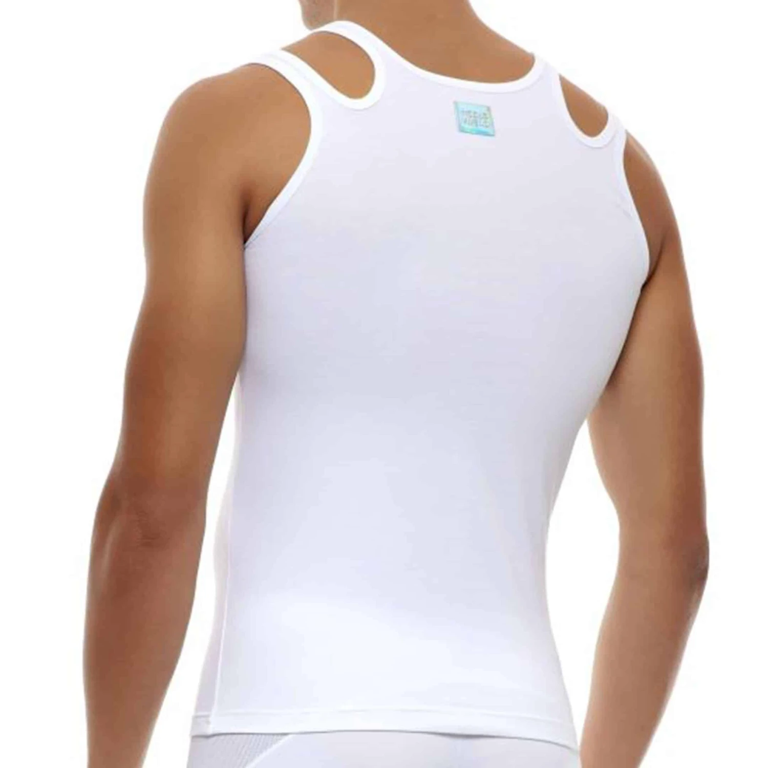 Débardeur monochromatique, doux et confortable en coton extensible écologique certifié GOTS. Coupe ajustée avec doubles bretelles. Réédition du modèle original Modus Vivendi de 1994. Logo holographique cousu en haut du dos.