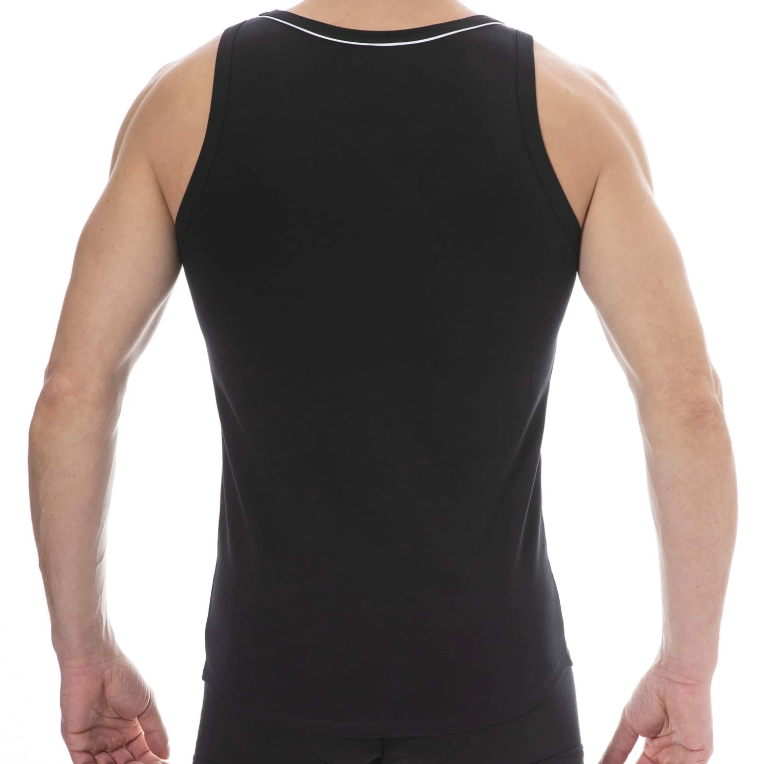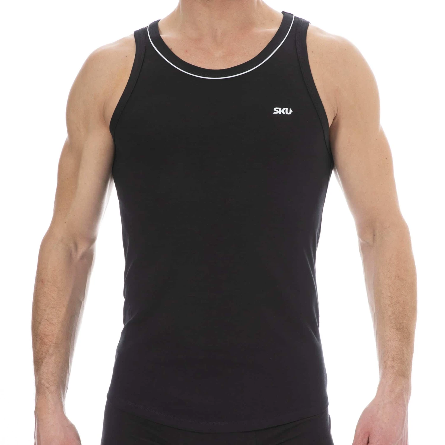 Débardeur sport et sexy en coton premium doux et extensible de couleur intense. Cintré juste comme il faut, il valorisera votre musculature sans gêner vos mouvements. Coupe courte et arrondie en bas, pour tomber parfaitement sur un pantalon. Le col rond est subtilement souligné par un liseré de couleur contrastée. Logo SKU sur la poitrine.