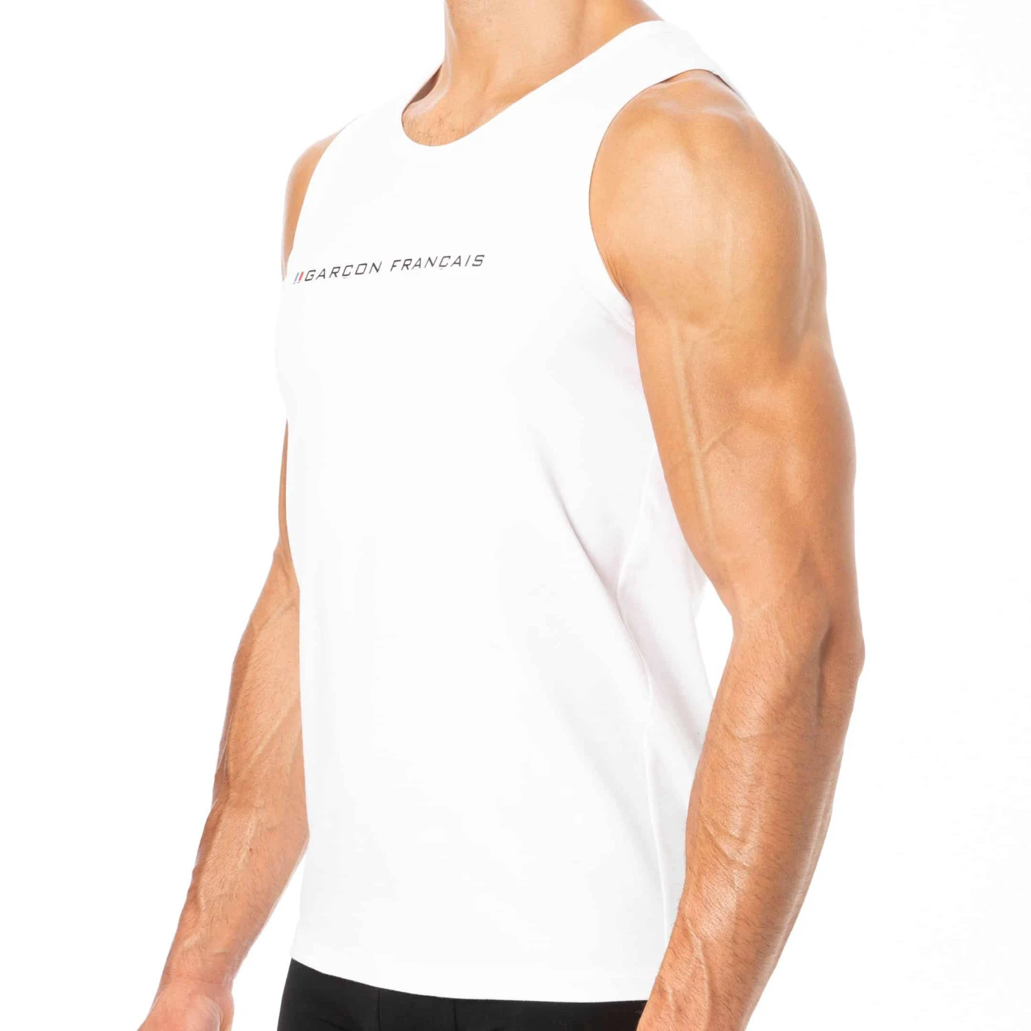 Débardeur ajusté très confortable en coton biologique GOTS certifié Oeko-Tex. Coupe simple et élégante avec col rond. Logo Garçon Français imprimé sur la poitrine. Fabrication 100% française.