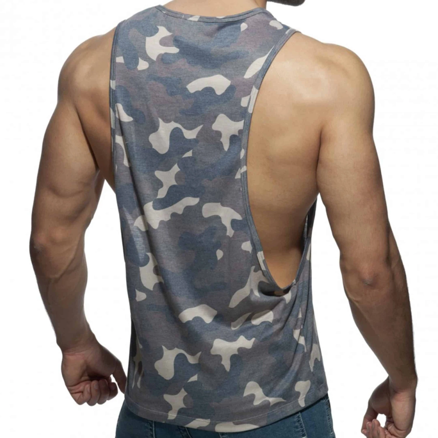 Débardeur en mélange doux et léger à base de viscose. Motif camouflage délavé. Larges ouvertures sous les bras. Logo Addicted en silicone sur la poitrine.