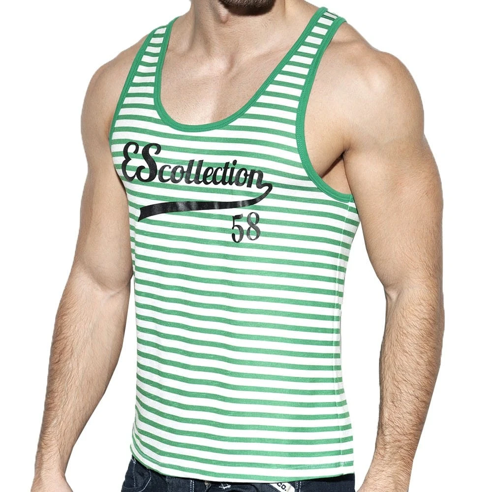 Débardeur en microfibre douce imprimée d’une rayure marinière. Coupe ajustée. Logo ES Collection 58 sur la poitrine.