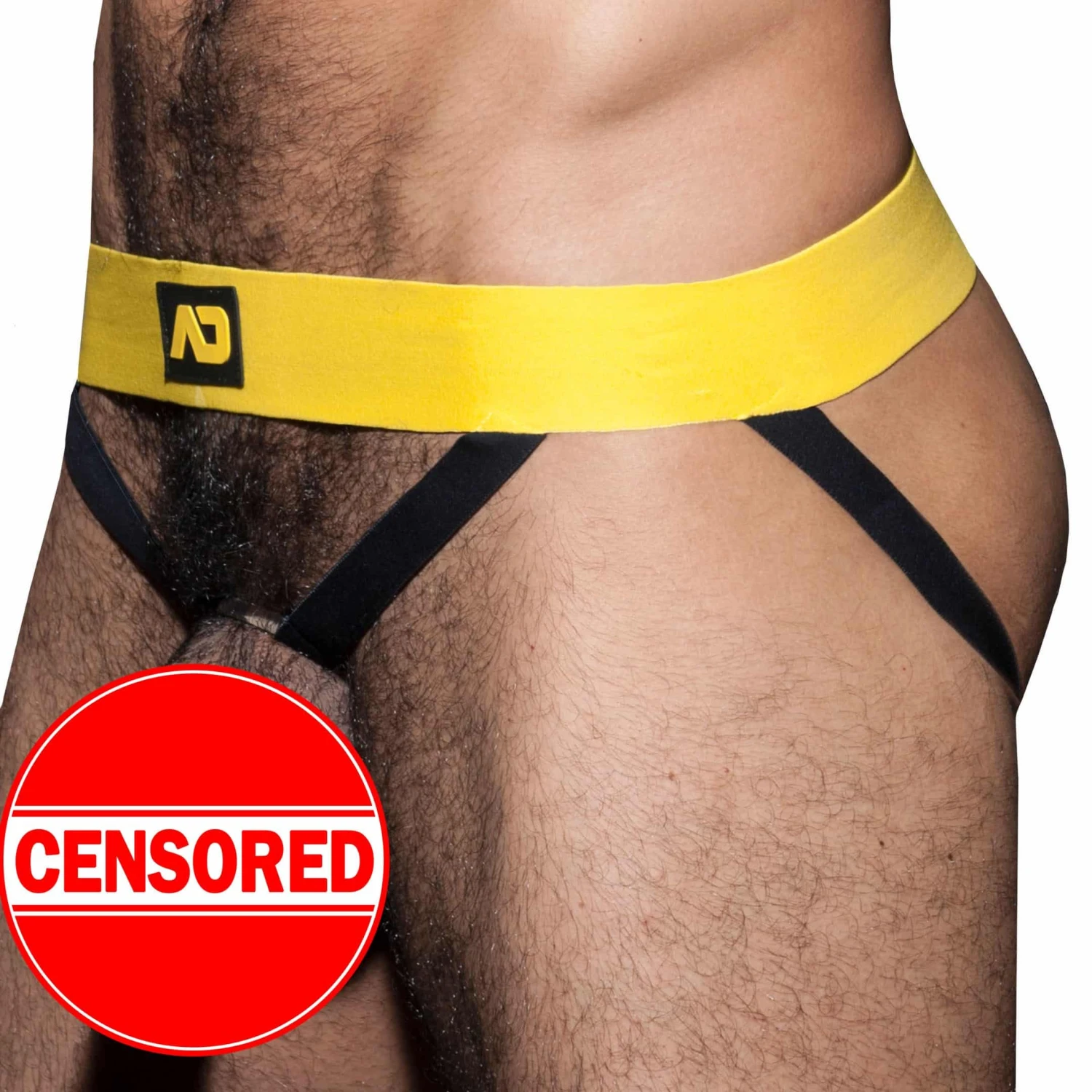 Jockstrap de couleur fétichiste ultra sexy et provocant. Design minimaliste intégrant un anneau cock ring en silicone, idéal pour augmenter votre volume frontal. Straps devant et derrière. Ceinture élastique signée du logo AD en silicone.