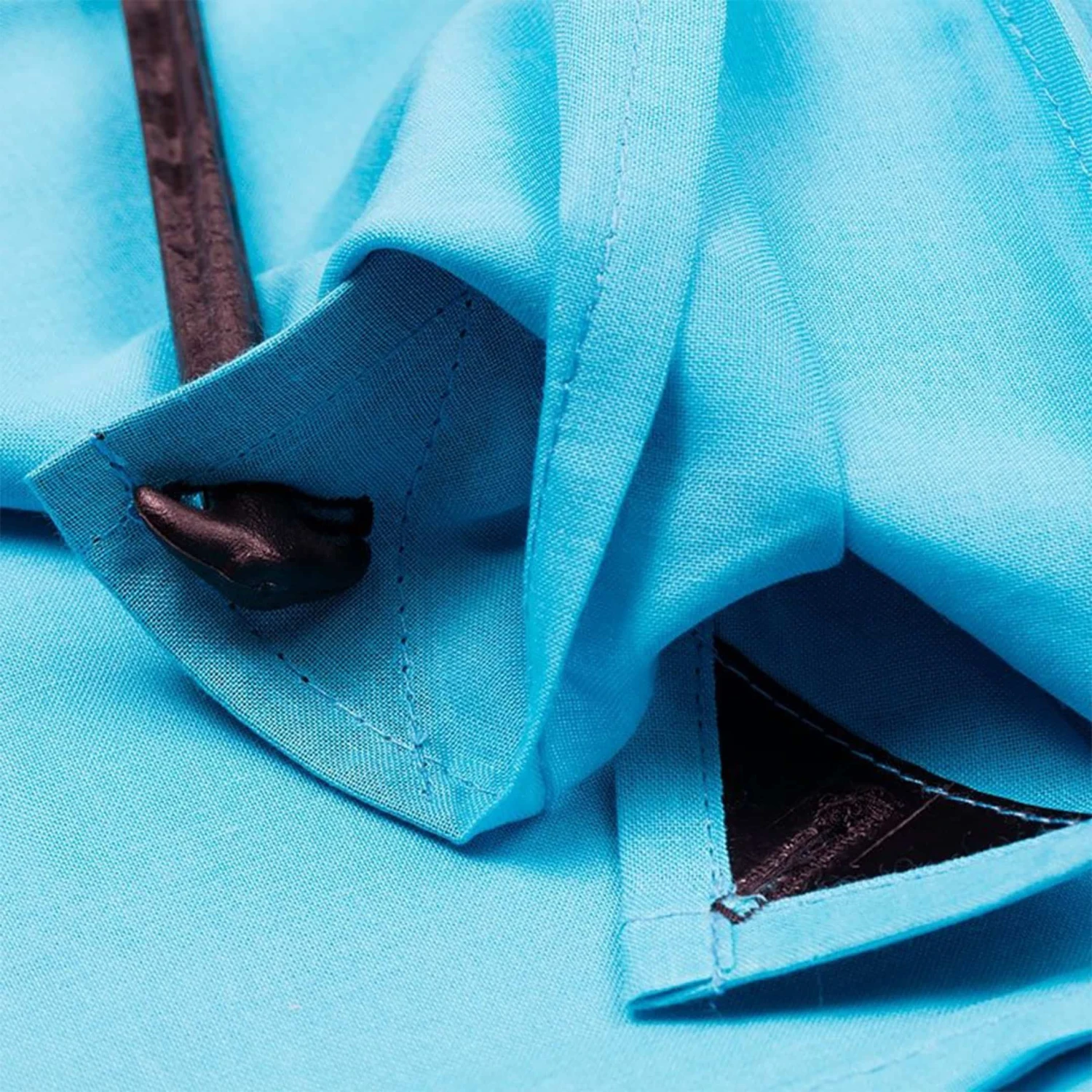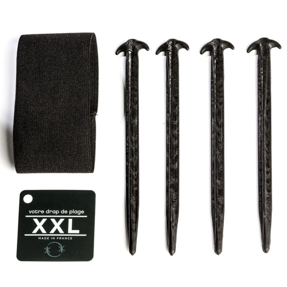 Drap de plage innovant aux dimensions XXL (2,15 x 1,60 m) en voile 100% coton, naturellement doux et léger (270 g). Retenu à chaque extrémité par des « piquetas » positionnées dans des boutonnières renforcées, le drap de bain ne s’envole pas ! Aussi pratique à la plage que pour un pique nique dans l’herbe. Fabrication 100% Française.