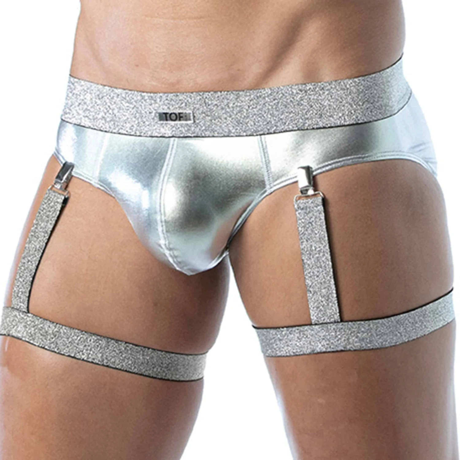 Accessoire masculin très sexy s’inspirant du porte-jarretelles. Constitué de bandes élastique en fils métallisés Lurex, il s’attache à votre sous-vêtement par une pince. S’ajuste sur la cuisse l’aide de 2 boutons-pression. Article vendu à l’unité: il faut en acheter 2 pour obtenir le look sur les photos. Fabrication française.