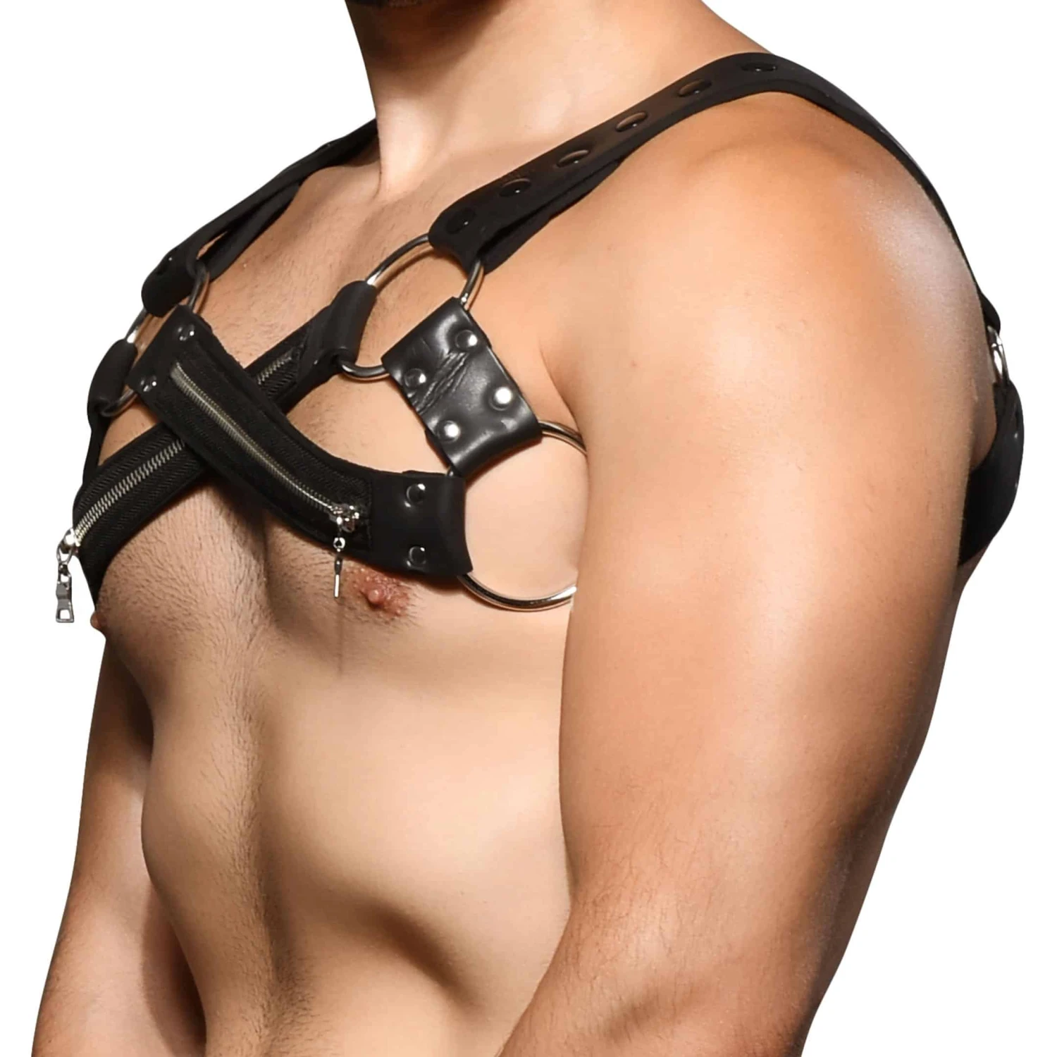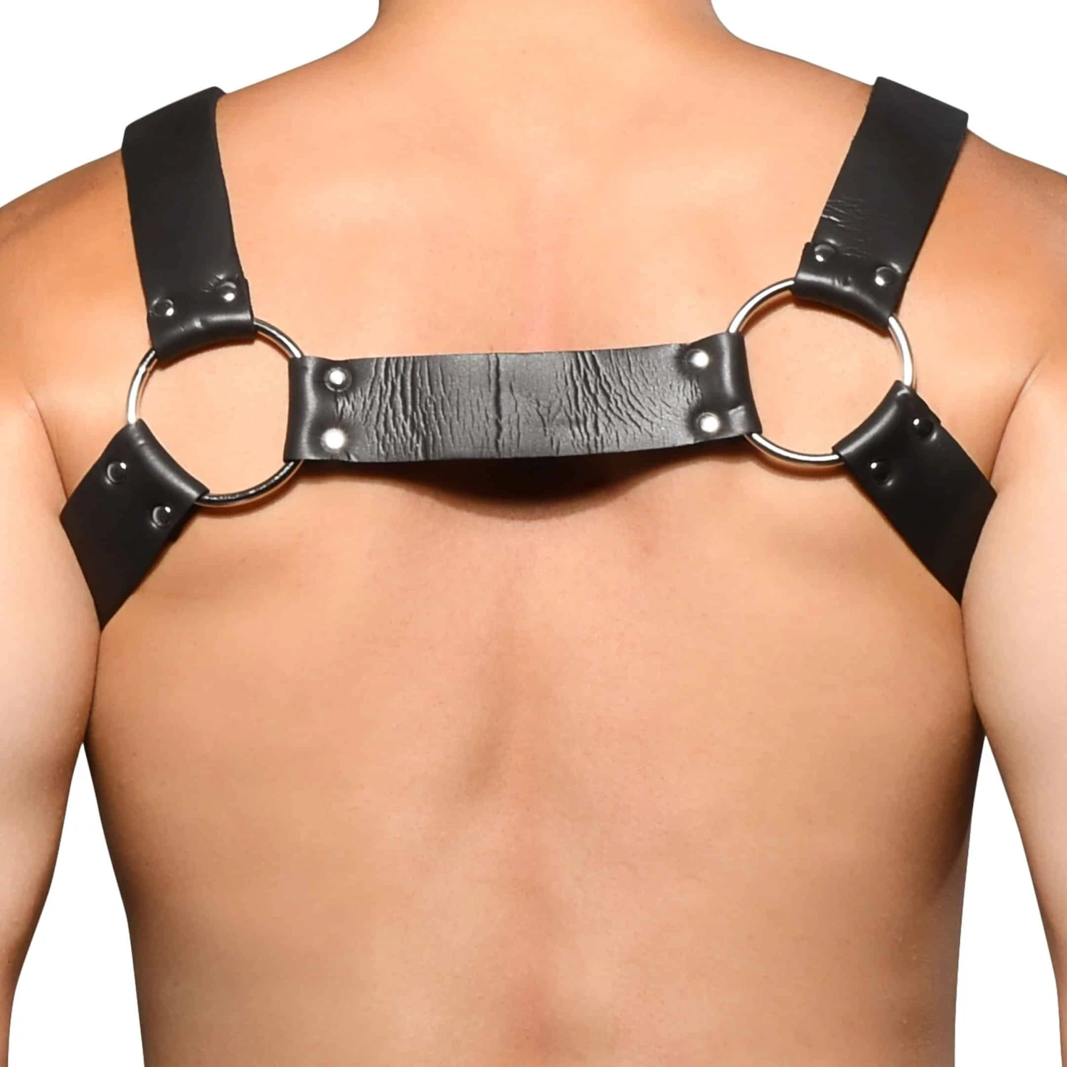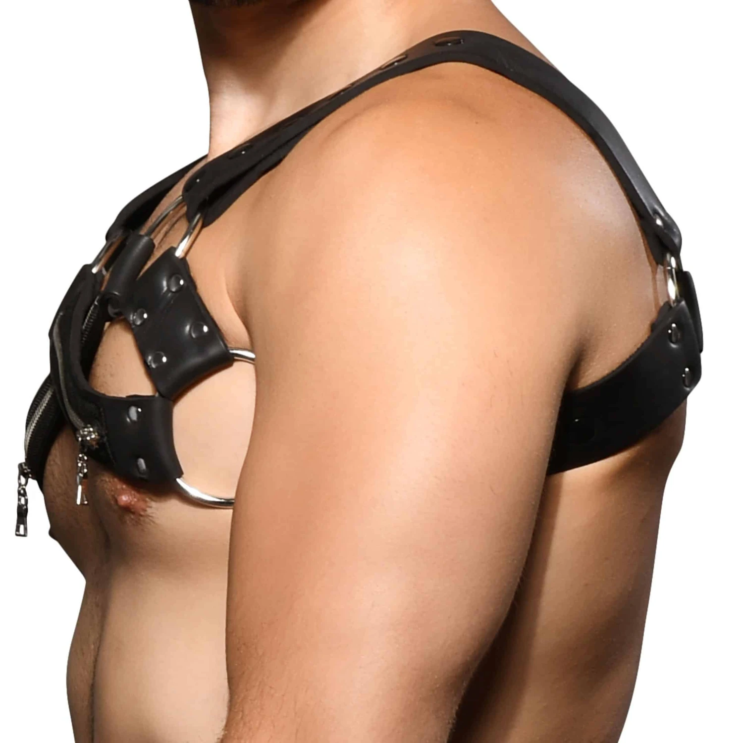 Harnais en simili cuir avec fermetures Eclair. Sangles ajustables. 6 anneaux métalliques. Taille unique. Édition limitée.