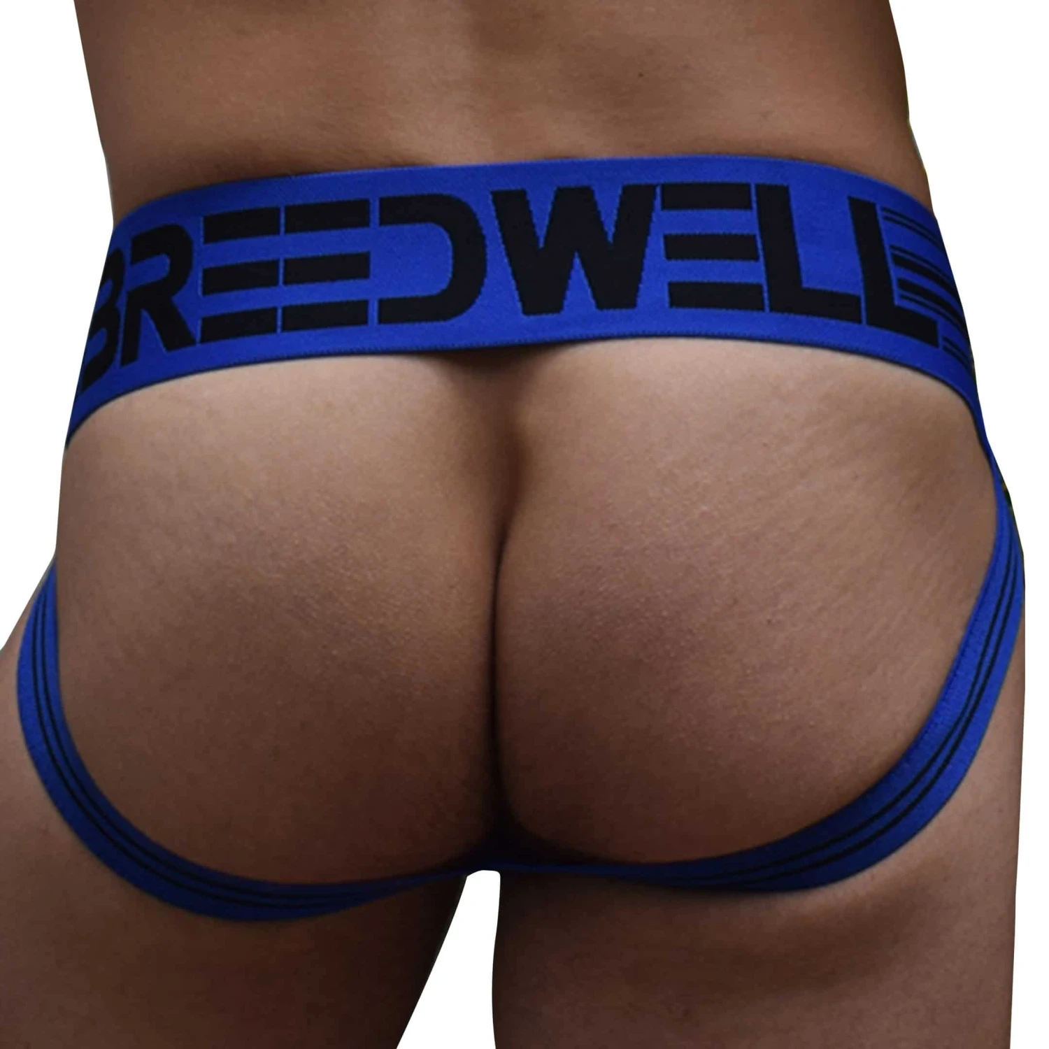 Jockstrap old-school en tissu extensiible tricoté. Poche frontale profonde. Ceinture élastique extra-large signée Breedwell.