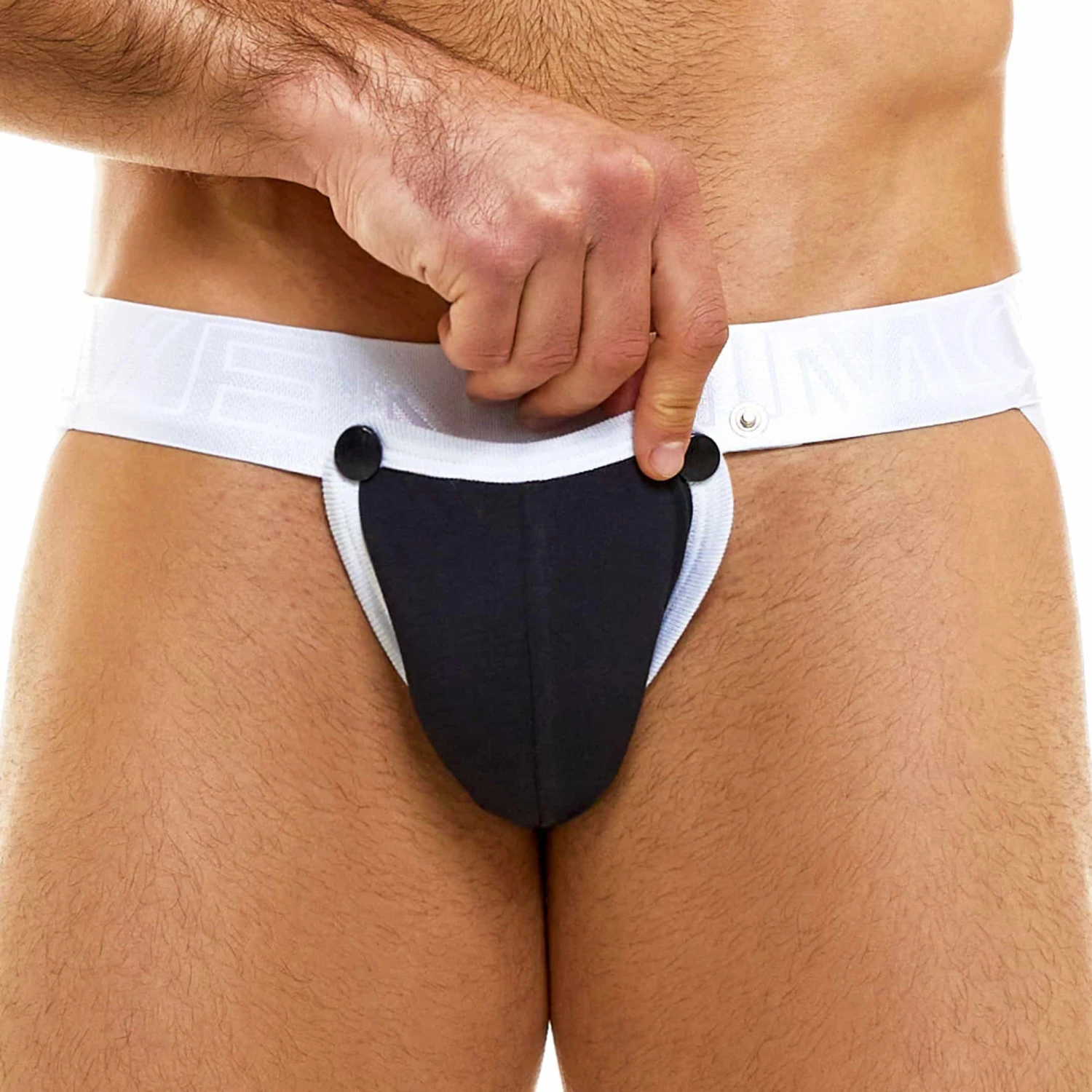 Jockstrap très sexy en coton, dont la poche frontale s’ouvre à l’aide de par deux 2 boutons pression. Inutile de l’enlever pour passer à l’action ! Large ceinture élastique signée Modus Vivendi.