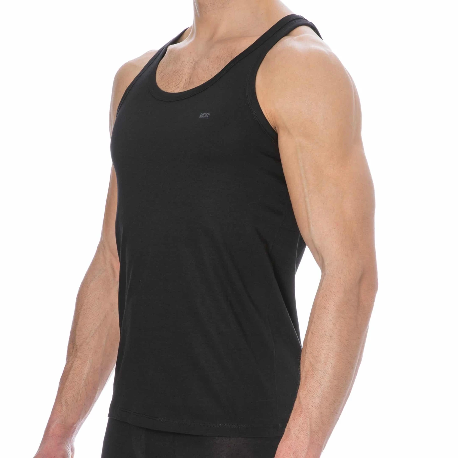 Lot de 2 débardeurs 100% coton. Coupe slim sans couture sur les côtés. Logo Diesel imprimé sur la poitrine.