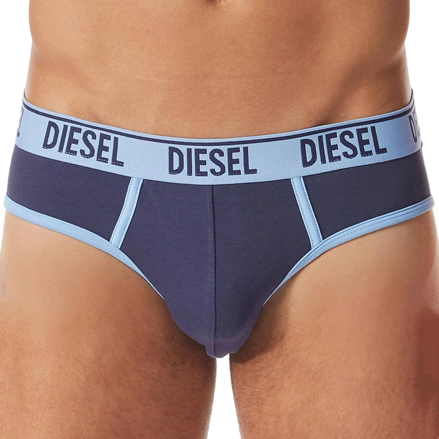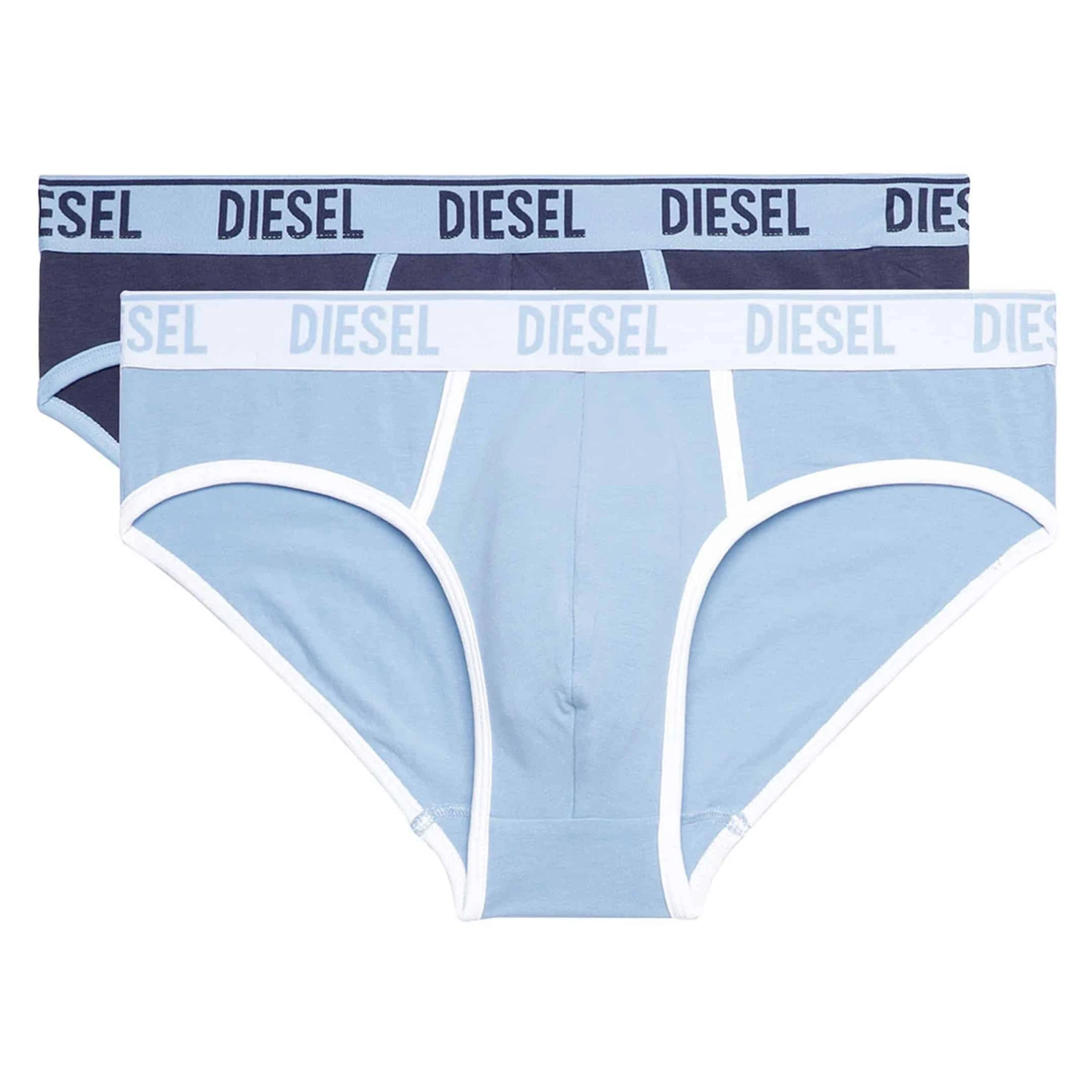 Lot de 2 slips en coton stretch, doux et confortable, avec bordures contrastées. Poche frontale doublée. Ceinture élastique signée Diesel.