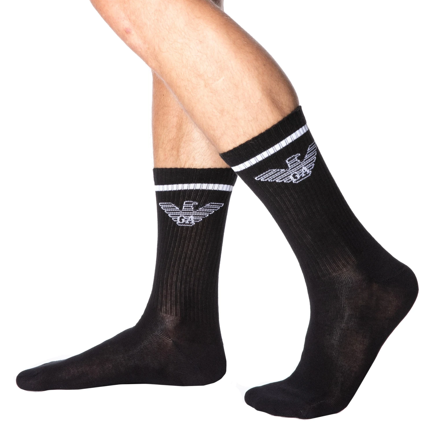 Lot de 3 paires de chaussettes mi-mollet en mélange de coton extensible et de microfibre. Détails de couleur contrastée. Logo Emporio Armani sur le côté. Taille unique 39-46.