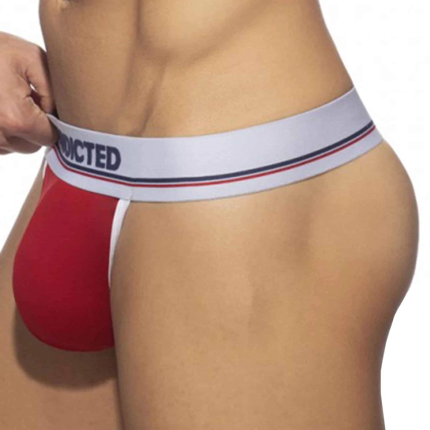 Lot de 3 strings en coton stretch doux et confortable. Coupe taille basse très ajustée. Belle poche frontale préformée. Détails de couleur contrastée. Large ceinture élastique en jacquard signée Addicted.