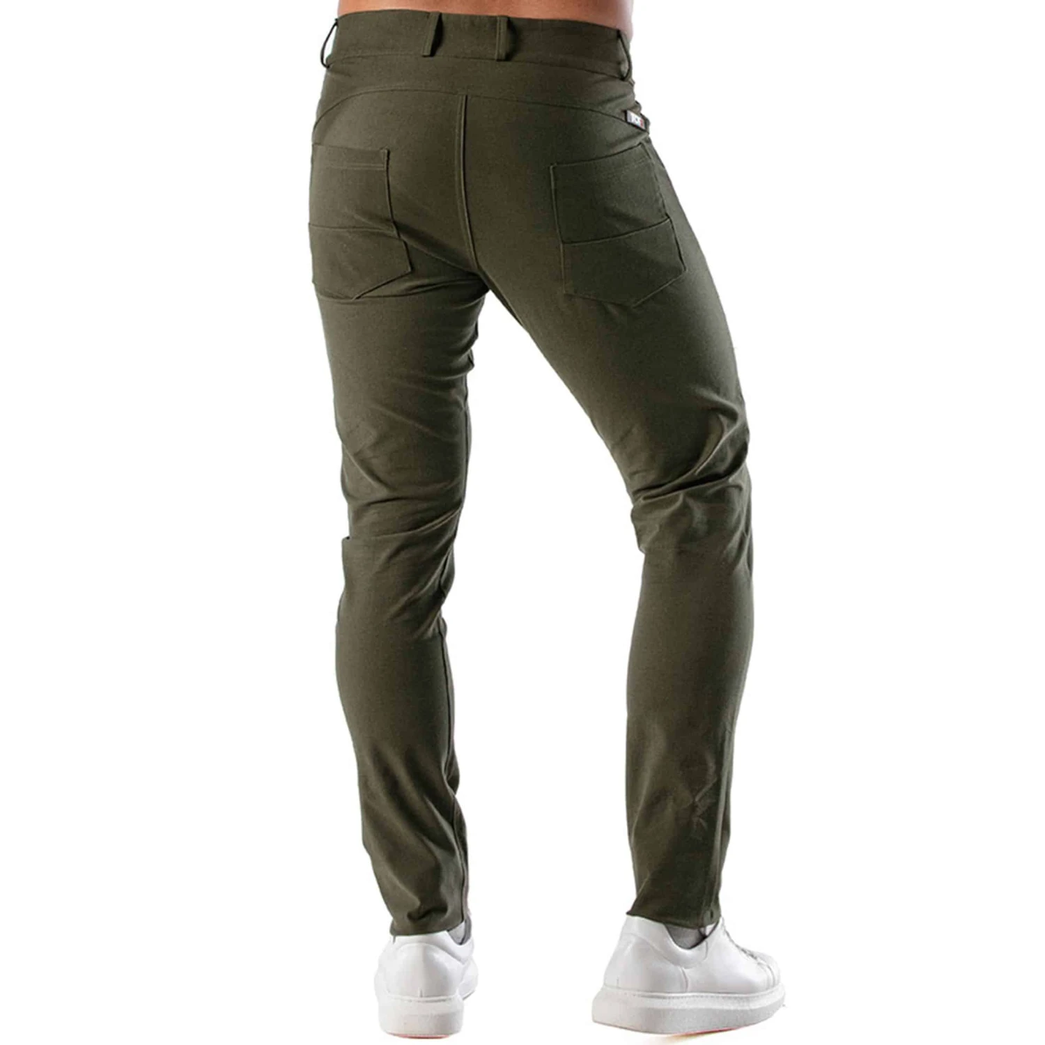 Pantalon chino taille basse et très ajusté en coton stretch. 5 poches. Passants de ceinture. Braguette à fermeture Eclair et 1 bouton. Bande tricolore sur le côté droit. Fabrication française.