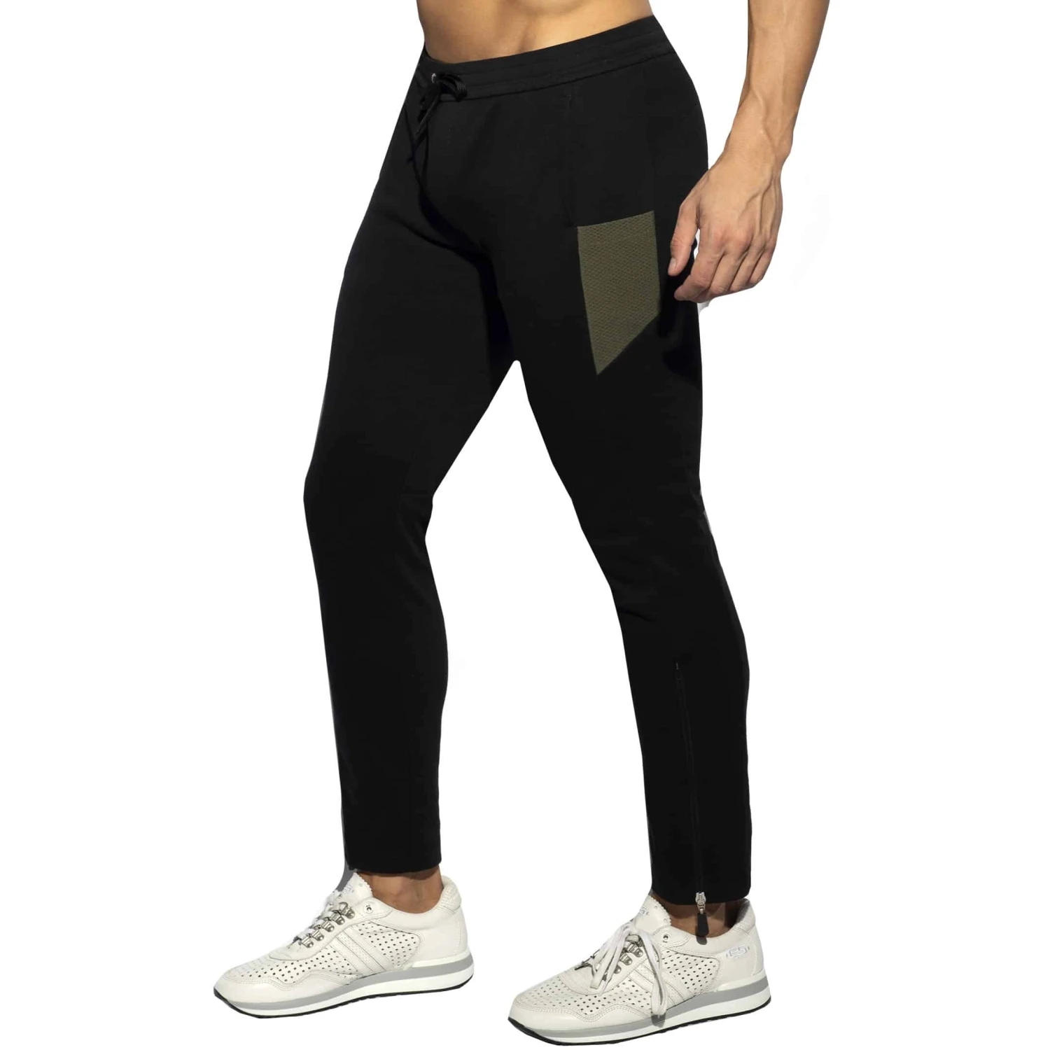 Pantalon de sport très confortable en mélange de coton et microfibre stretch. 3 poches, dont une poche de couleur contrastée pour le téléphone sur le côté gauche. Logo ES métallisé sur le côté droit. Ceinture élastique avec cordon de serrage. Fermetures Eclair en bas des jambes.