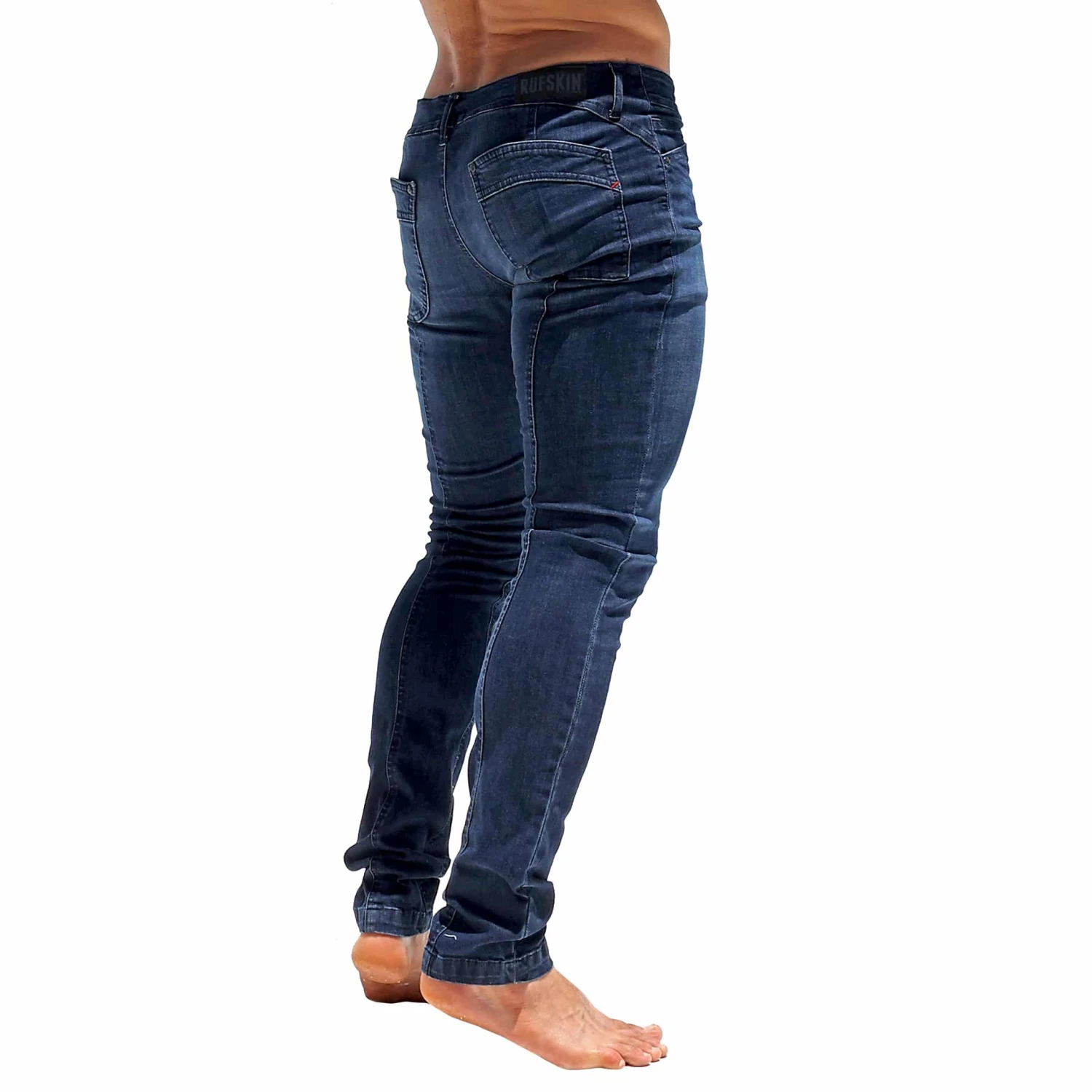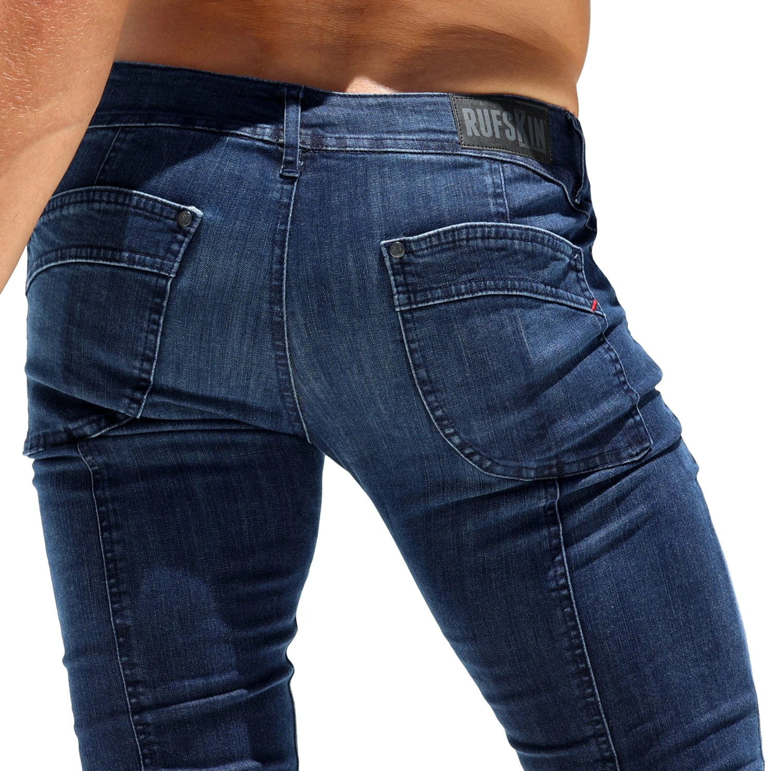Jeans stretch taille basse en toile denim légère. Coupe skinny très près du corps. Les lignes incurvées sur les poches arrières – caractéristiques de la marque – mettent en valeur votre fessier. Couture verticale derrière sur toute la hauteur de la jambe. Braguette à boutons. Rivets métalliques Rufskin. Fabriqué en Californie. Taille US.