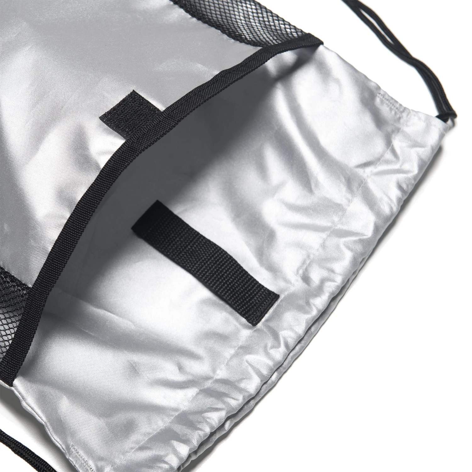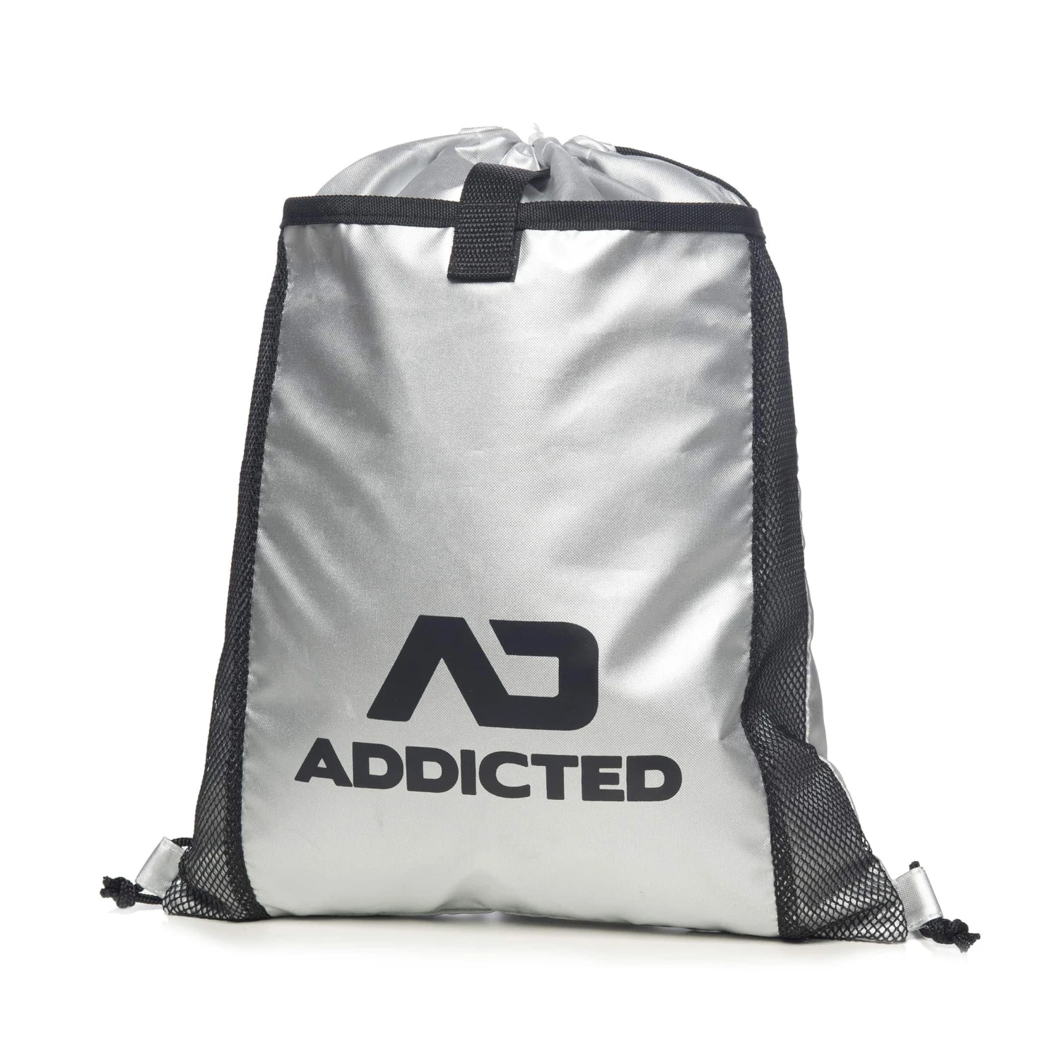 Sac de plage en microfibre légère. Grand compartiment frontal avec fermeture Velcro. Petite poche à fermeture Eclair à l’arrière. Lanières réglable pour fermer le sac et le porter sur le dos. Logo Addicted. Dimensions : H 44 x L 34 cm.