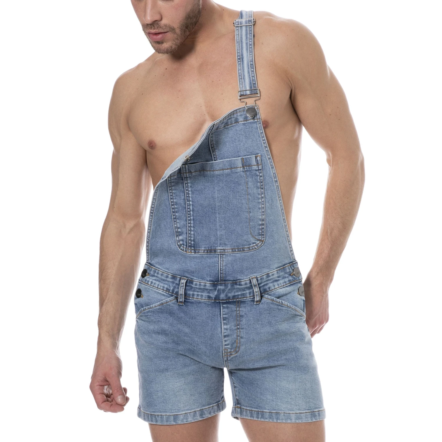 Salopette courte en jeans stretch à la coupe slim, sexy et très ajustée. Couture verticale derrière la jambe. 1 grande poche sur la poitrine avec 2 compartiments à stylos séparés. 2 poches à l’avant et deux à l’arrière. Bretelles réglables, détachables à l’aide de pinces en métal. Fermeture à double bouton de chaque côté. Braguette factice. 5 passants de ceinture. Etiquette SKU sur la poche arrière droite. Taille US.