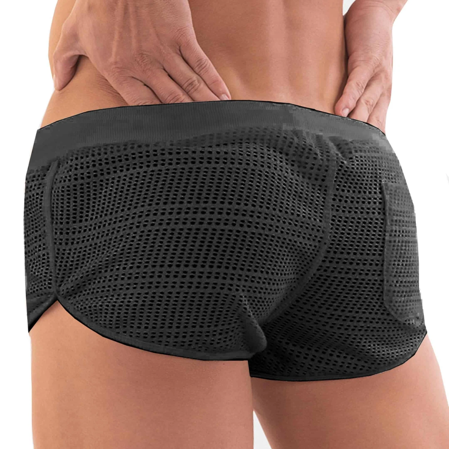 Short taille basse très sexy en résille non doublée pour une totale transparence. Coupe courte, rétro, échancrée sur les côtés. Logo Barcode en silicone sur la poche arrière. Ceinture élastique avec cordon de serrage.
