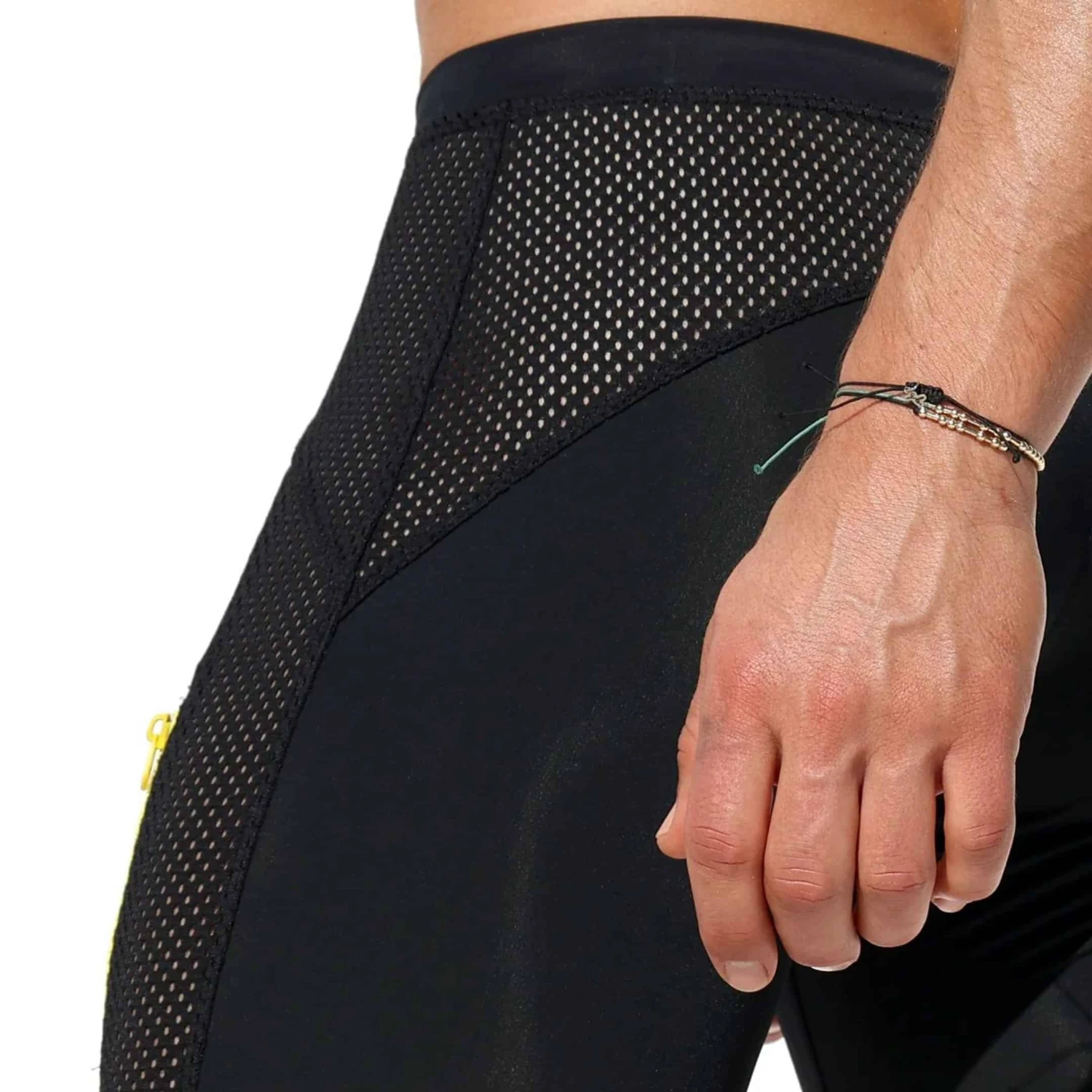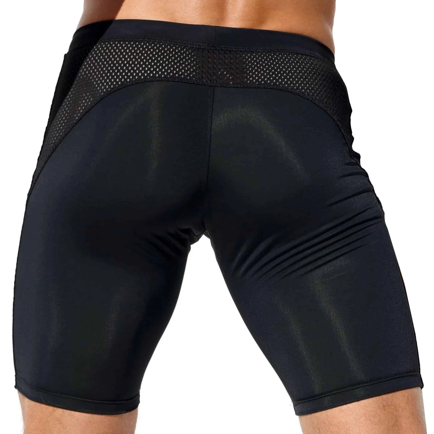Short cycliste léger et respirant en nylon extensible avec finition mate. Tissu à mémoire de forme. Empiècements en mesh sport. Poche avec fermeture éclair de couleur contrastée sur la jambe gauche. Braguette factice. Ceinture élastique avec cordon de serrage intérieur. Fabriqué en Californie.