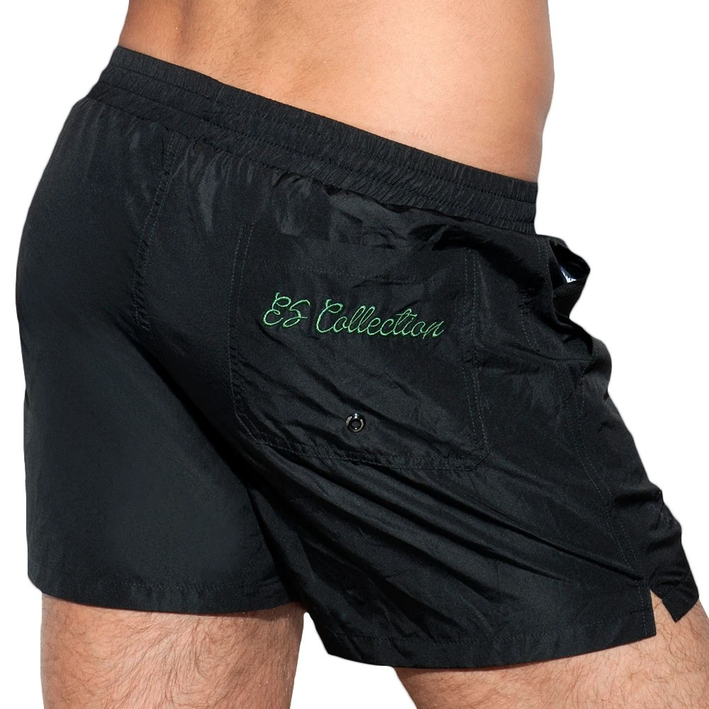 Short de bain taille basse en microfibre très confortable et résistante. Slip intérieur U-Shape en mesh pour un grand confort. 3 poches. Logo ES Collection brodé. Ceinture élastique avec cordon de serrage. Fabriqué à Barcelone.