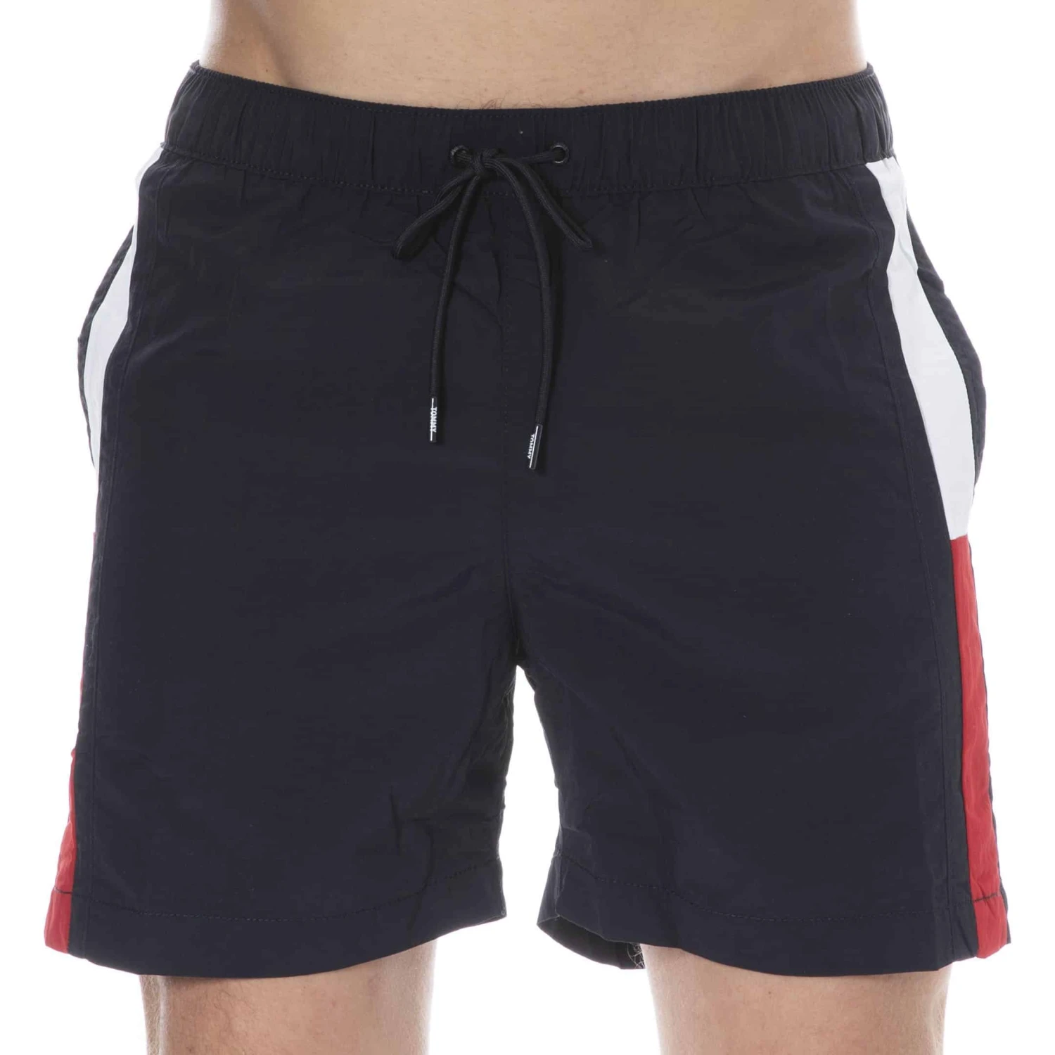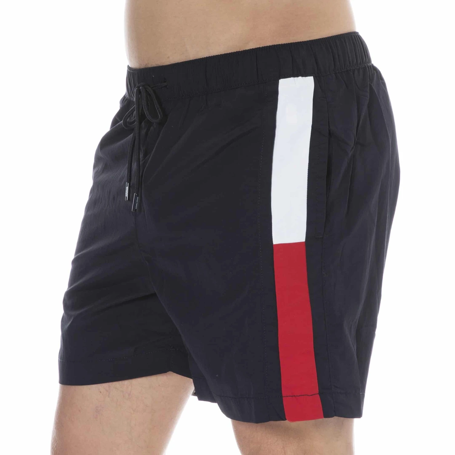 Short de bain en nylon recyclé extensible. Coupe ajustée mi-longue très élégante. Drapeau Tommy Hilfiger sur les côtés et à l’arrière. 3 poches. Slip intérieur en mesh. Ceinture élastique avec cordon de serrage.