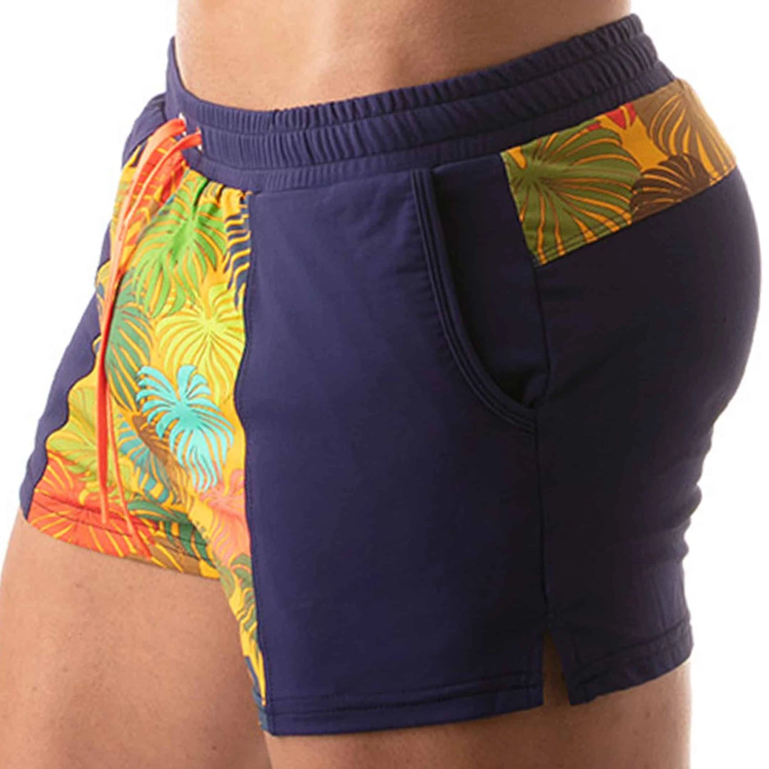 Short De Bain Floral – Marine – Jaune