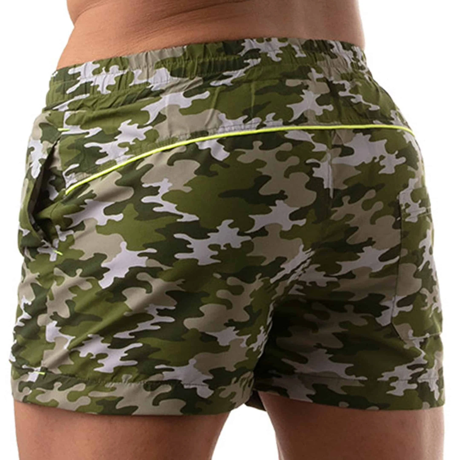 Short de bain très confortable en microfibre douce et légère. Coupe mi-cuisse . Braguette factice. 3 poches. Slip intérieur en mesh. Logo TOF imprimé sur la cuisse droite. Détails de couleur fluo. Ceinture élastique avec cordon de serrage. Fabrication française.