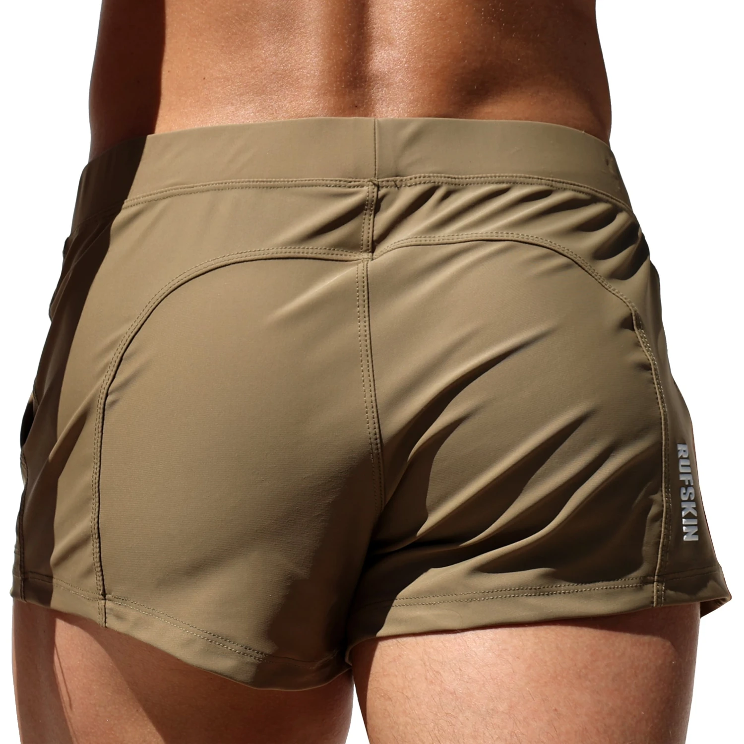 Short de bain en microfibre extensible. Pas de slip intérieur. 2 poches. Braguette factice. Les coutures incurvées à l’arrière mettent en valeur votre fessier. Ceinture élastique avec cordon de serrage intérieur. Logo Rufskin sur la jambe droite. Fabriqué en Californie.